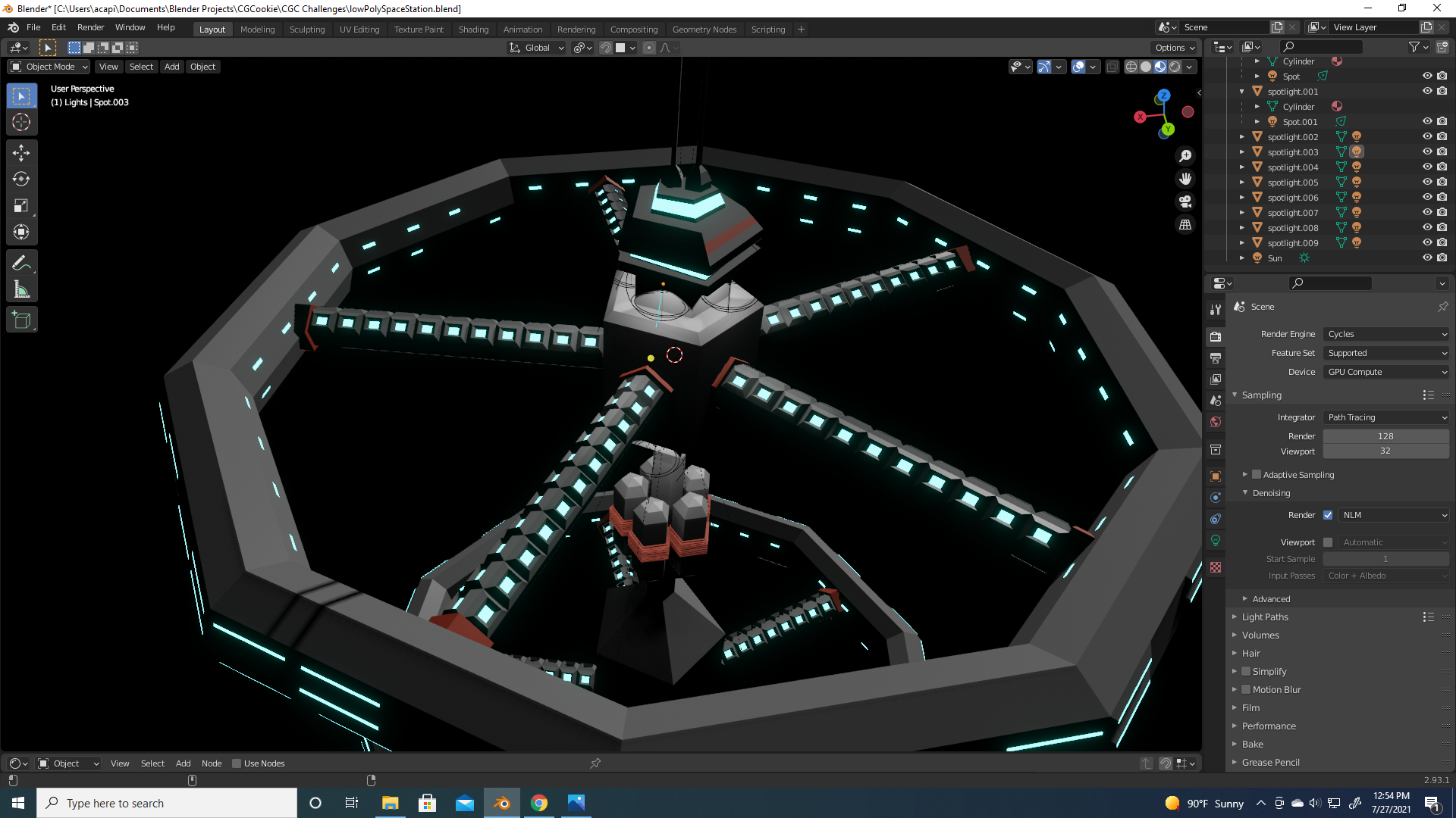 Finished the basic design and layout, and now adding in smaller details like windows and spotlights.