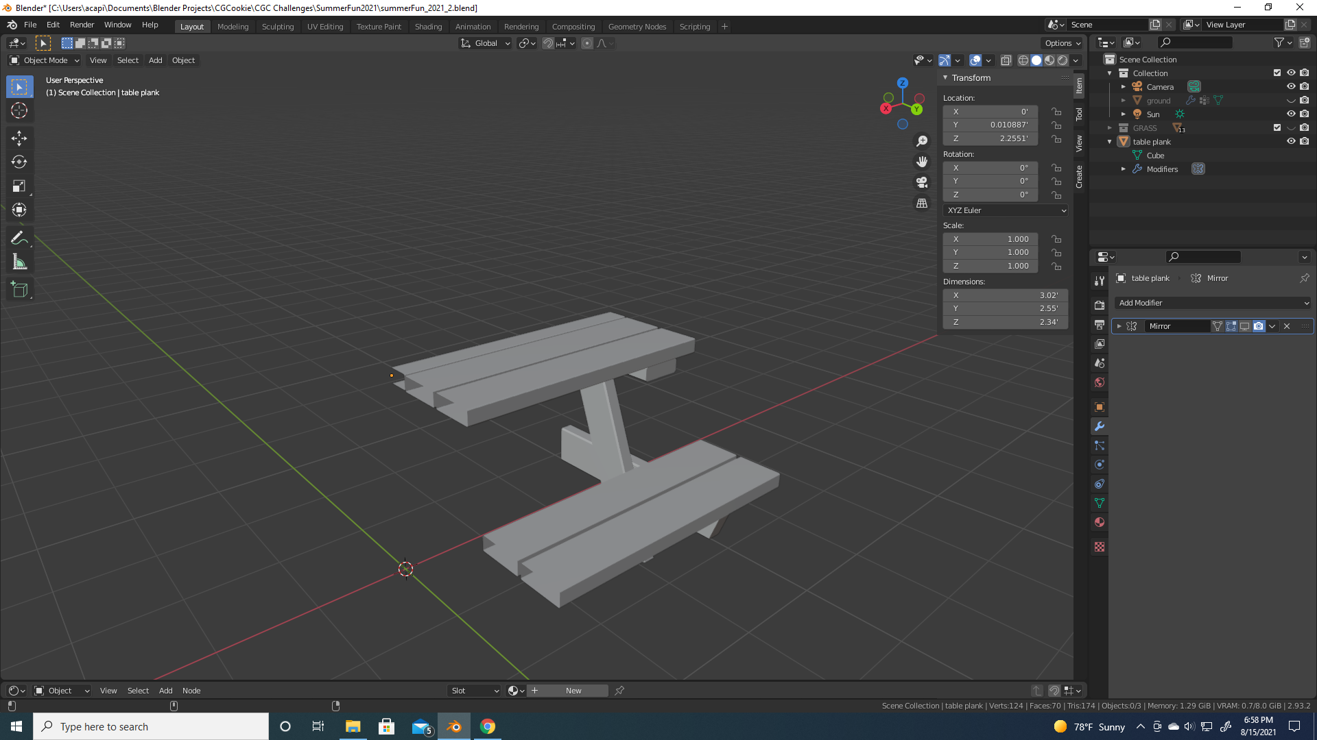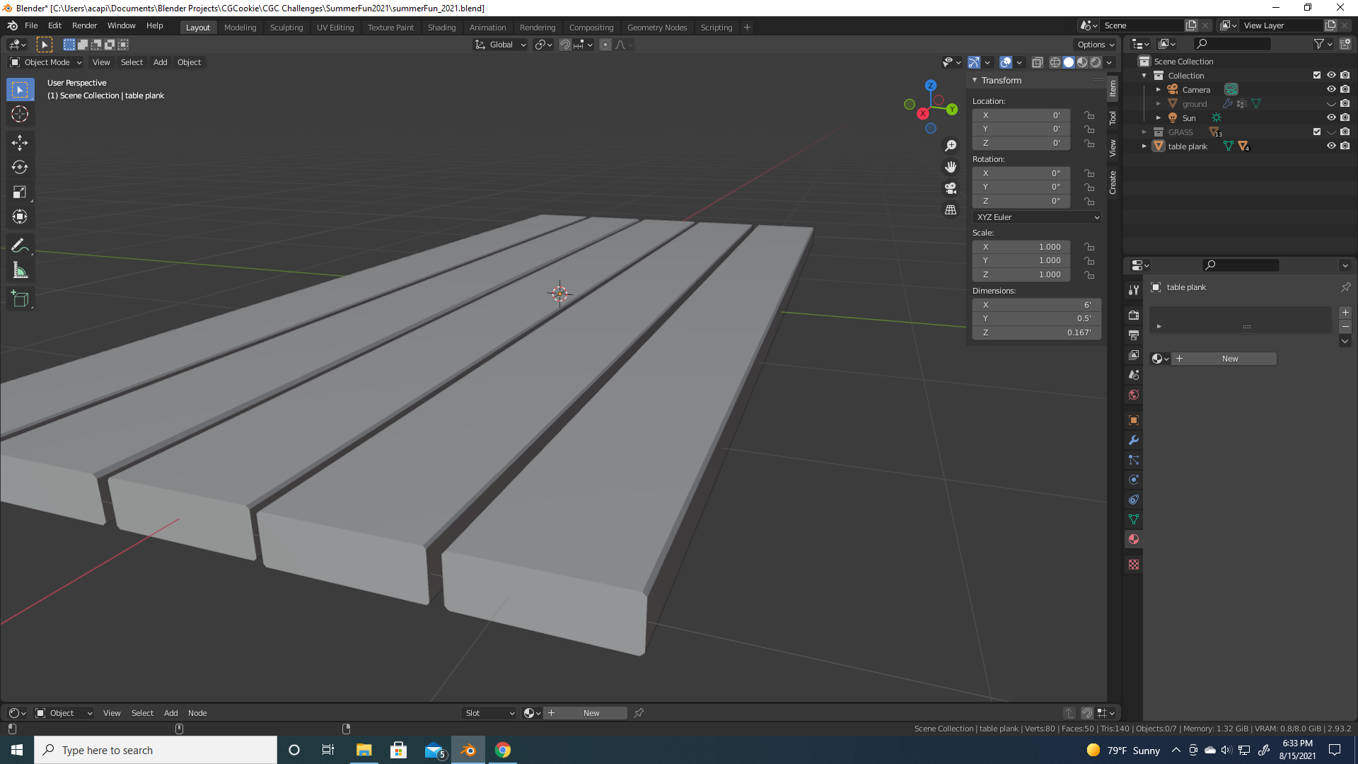I offset and skewed some of the boards, since this is a pretty old table, and also gave one a little bit of warping on one end: