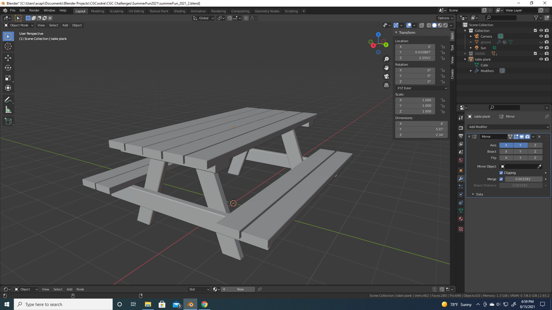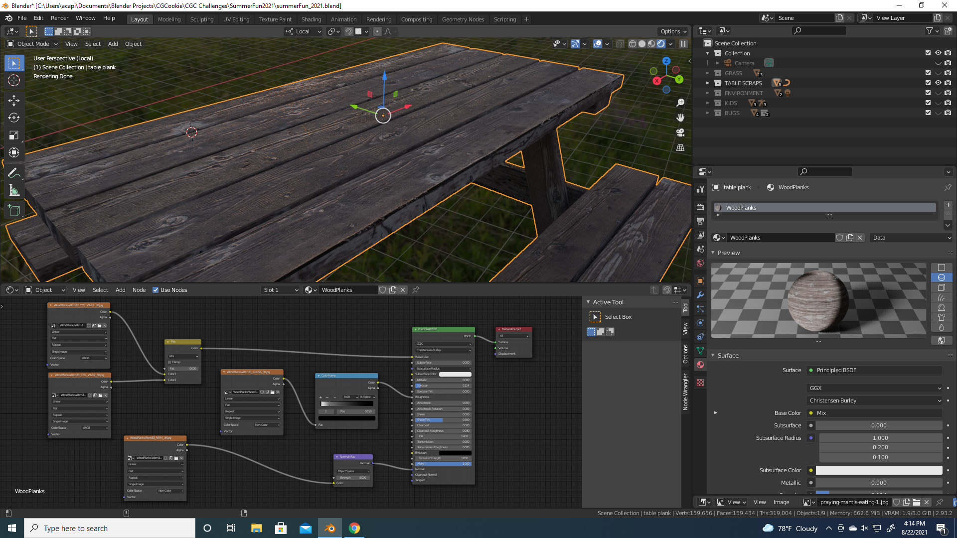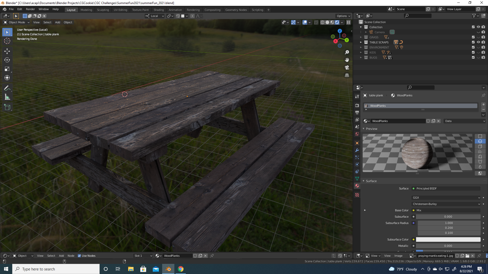 I wanted a weathered and worn look for my  picnic table, and since the UV for it would be pretty easy being mostly right angles and such I decided to use an image texture: