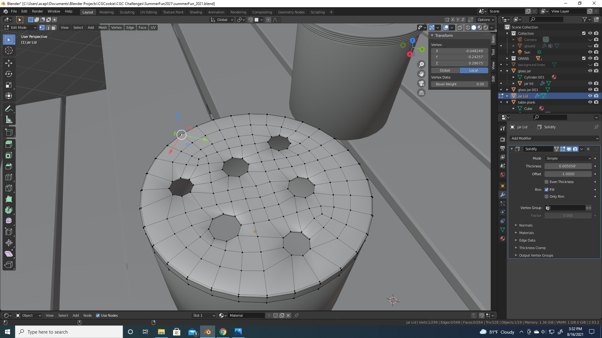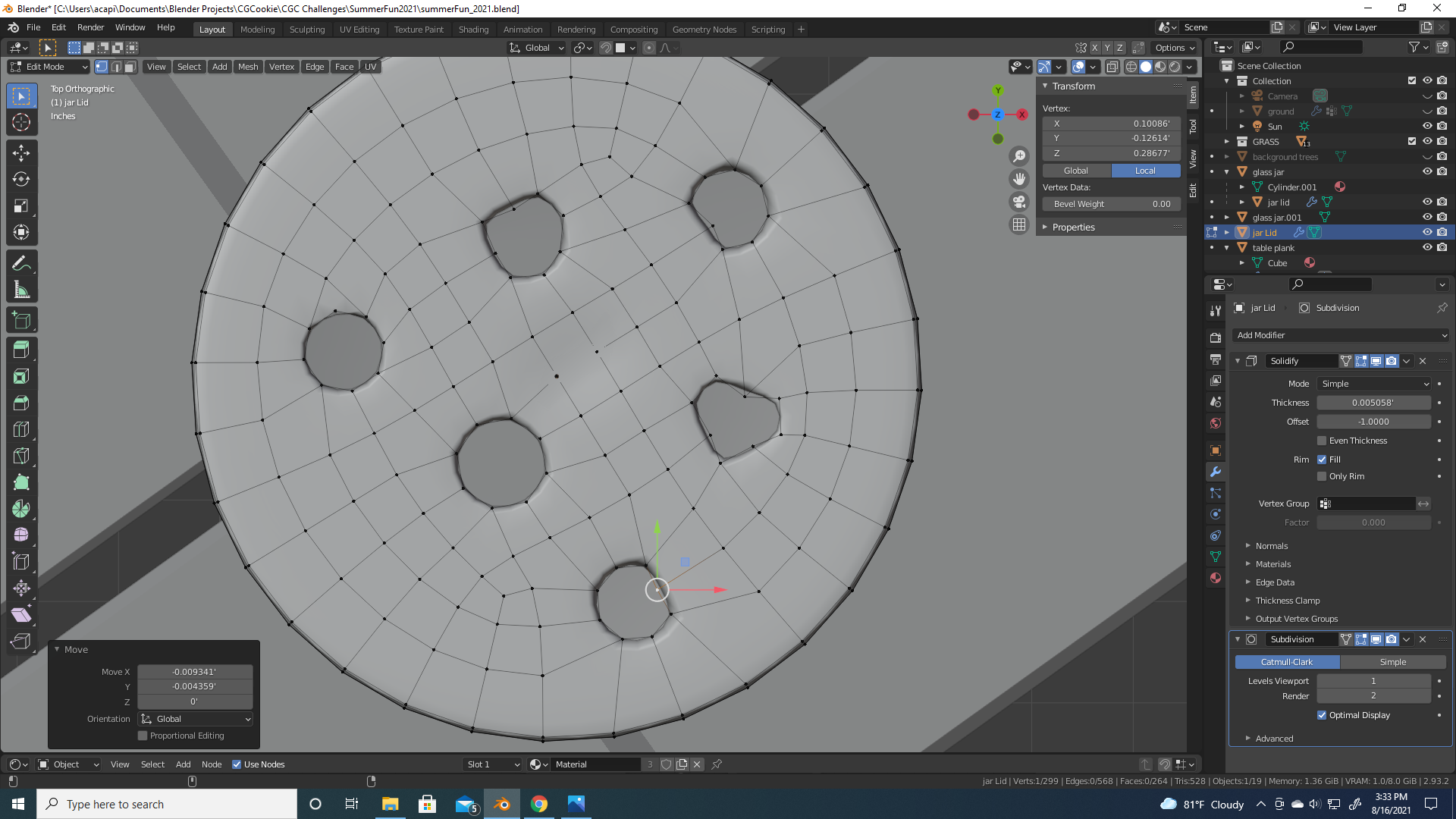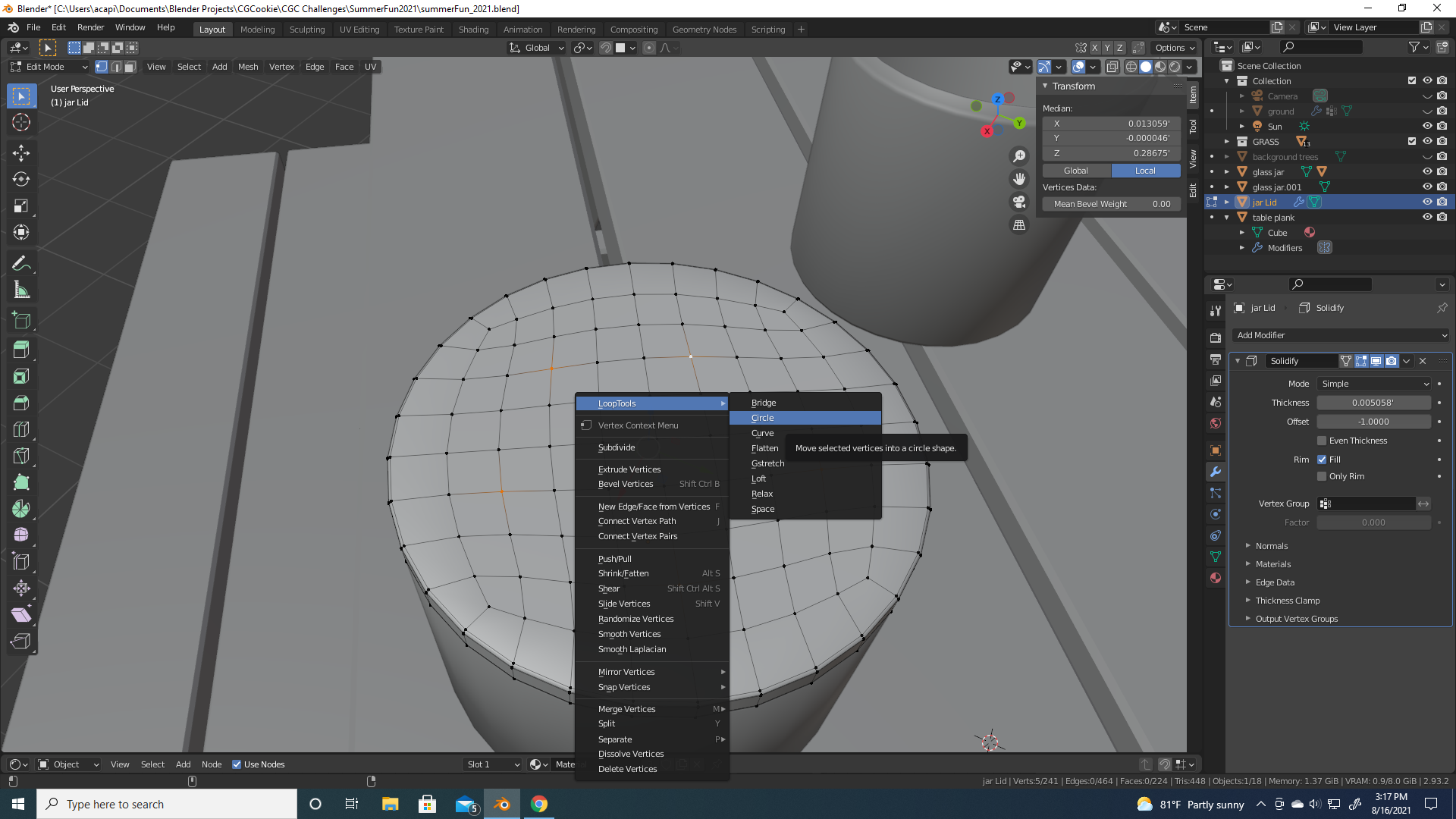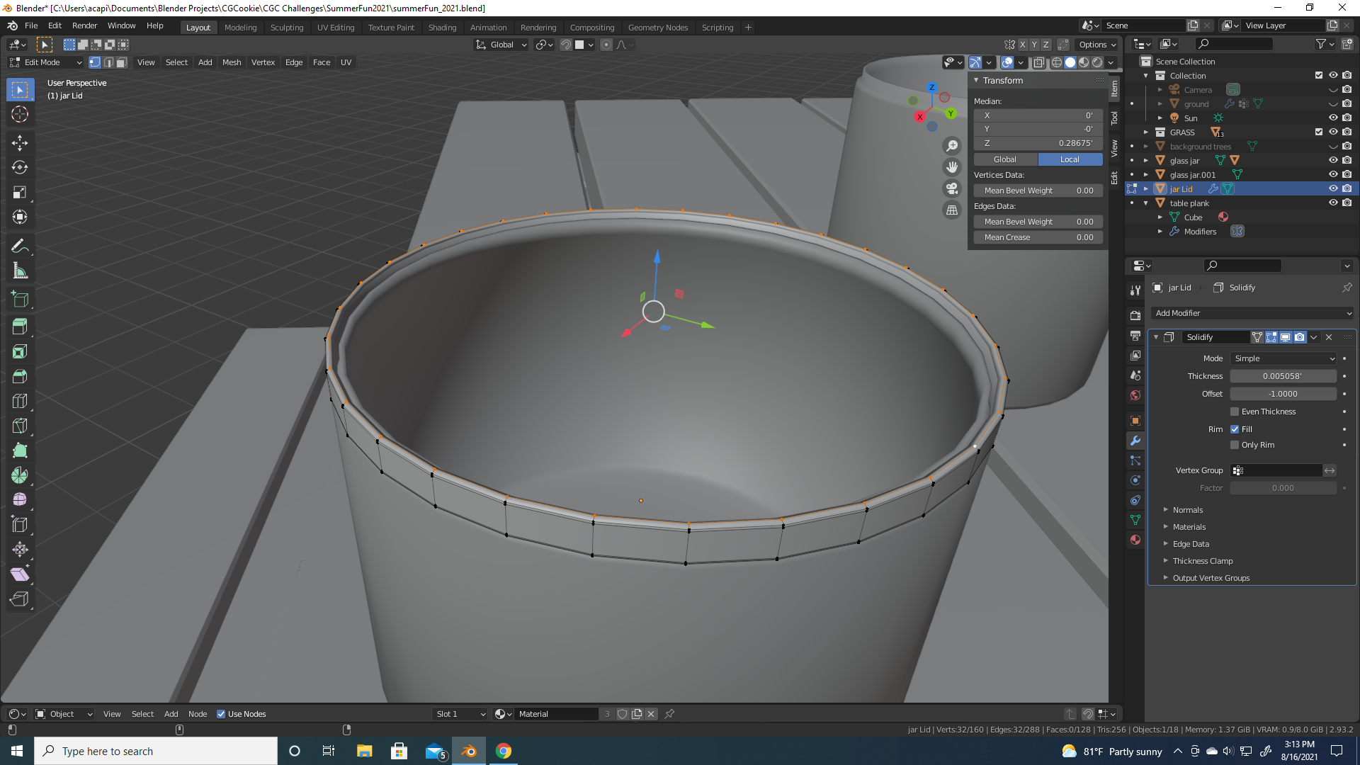Making the lids I just separated a loop from the body of the jar, and then more extrusion and a grid fill on top: