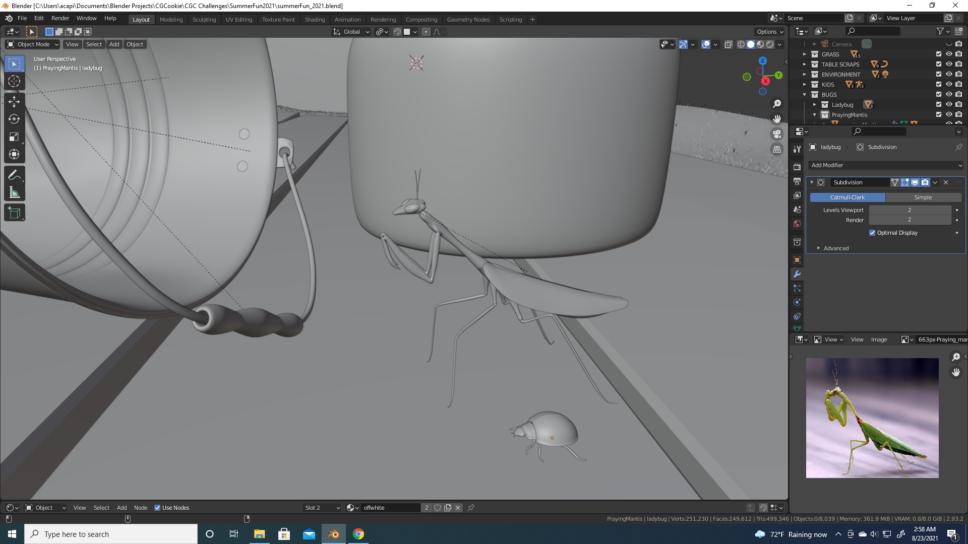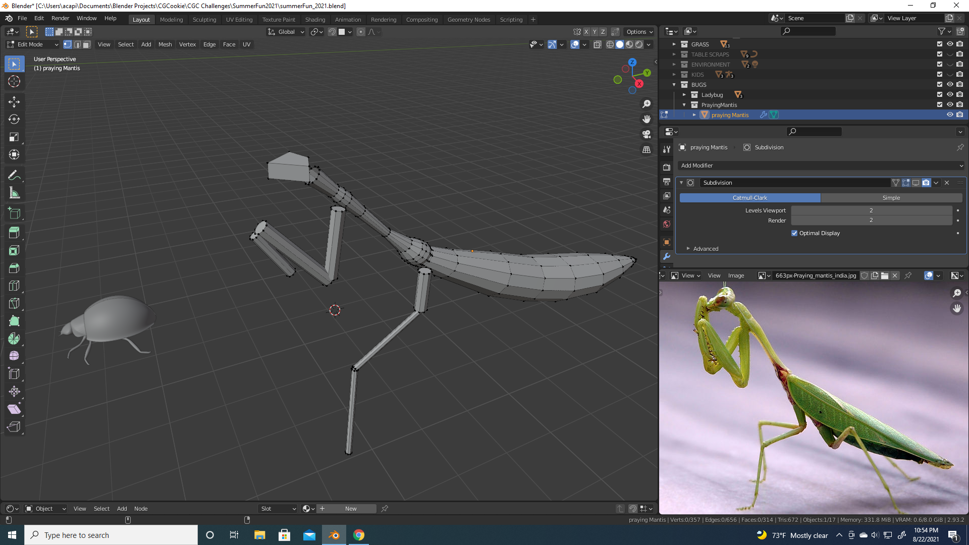 Some very cool stuff. Really love that praying mantis sculpt and the render from your previous post showing the glass shader is looking great.