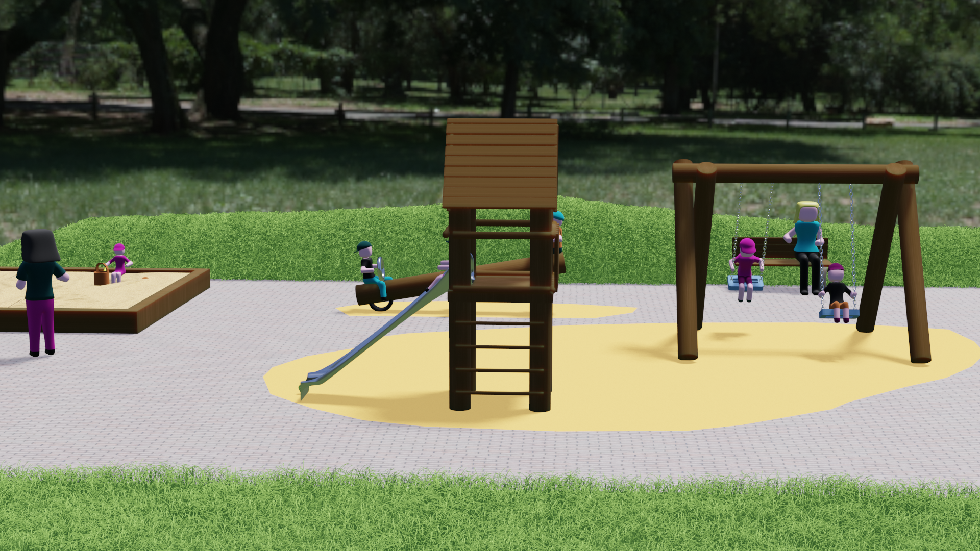 The people are finally playing on the playground