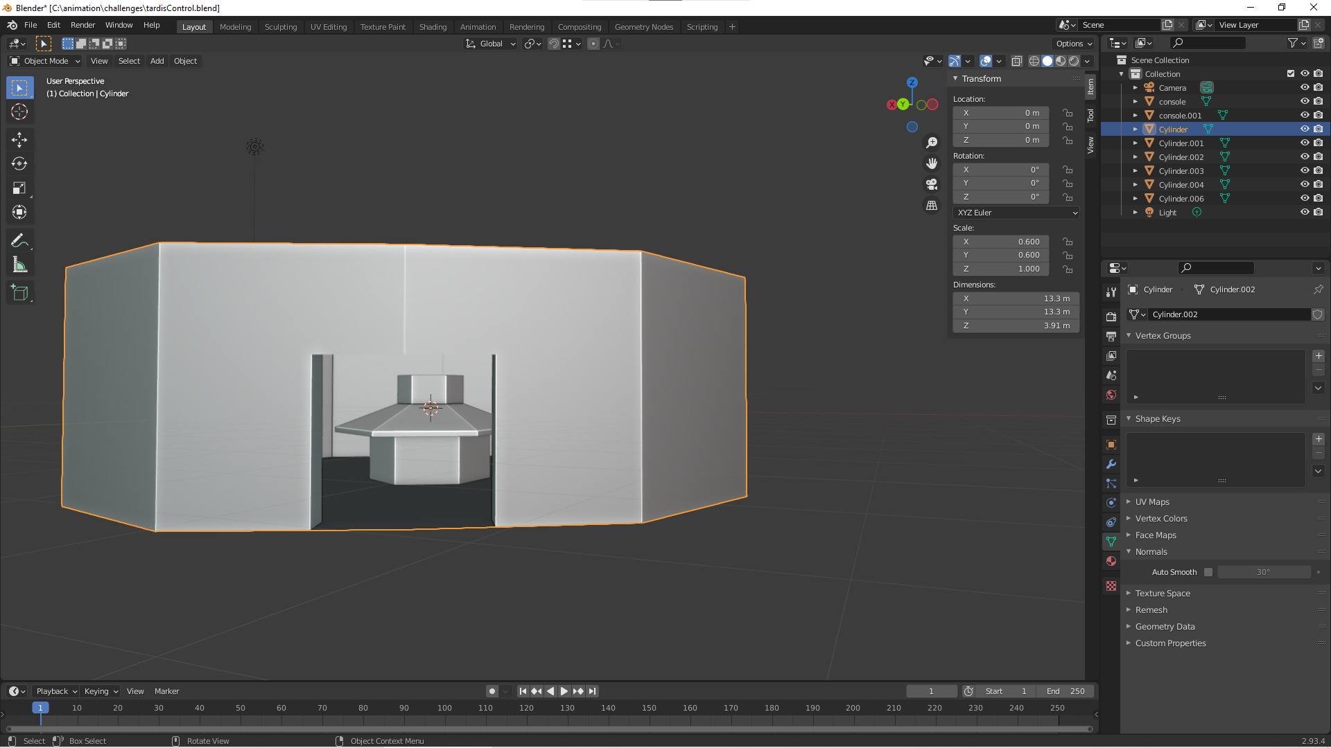 I will use this challenge to recreate the Tardis Control Room as seen in Season 15. Of course I start with rtewatching the episodes and i found a nice reference for the room: http://www.themindrobber.co.uk/doctor-who-tardis-3d-console.html