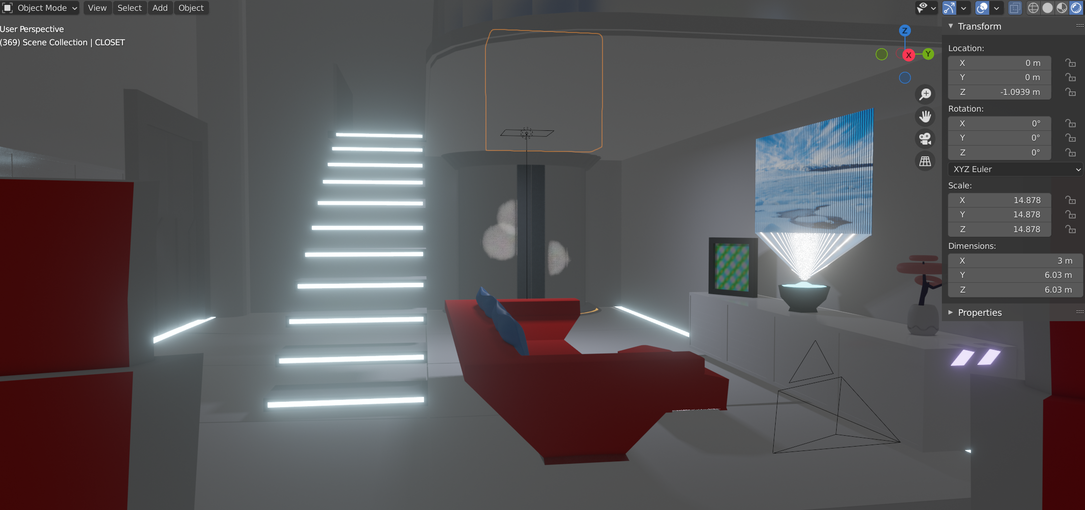 adding a lounge part to this room with a holographic tv and floating couch. I really should patent this :))))