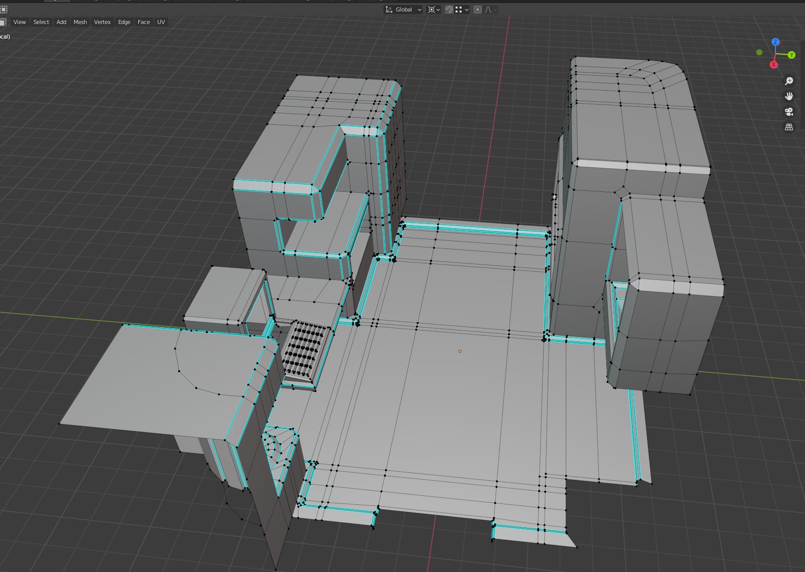 I decided I wanted everything to look prefabricated, like this is a standard issue living space, where everything is designed to fit into the small space, so most of the things in the room are connected, just extrusions from the floor.