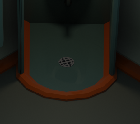 I didn't originally plan on making the shower spray some water, but my wife said she wanted that, so here we are 😅. I used a particle simulation with small icospheres that had a partially transparent material. I used a spherical gradient texture and animated the roughness decreasing to give the effect that the ground is getting wet. It's pretty subtle but hopefully it comes through.