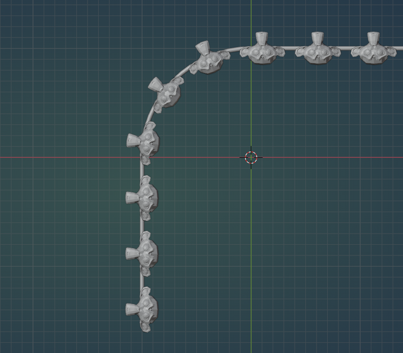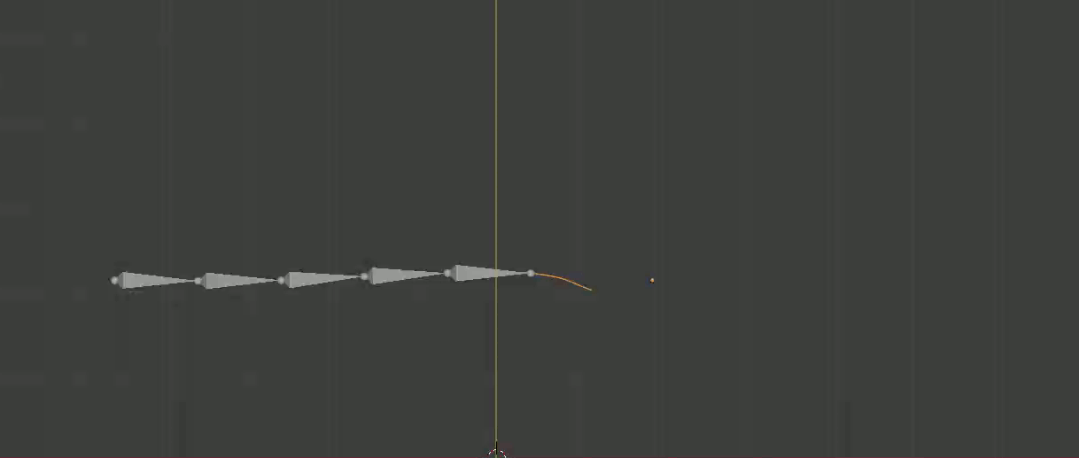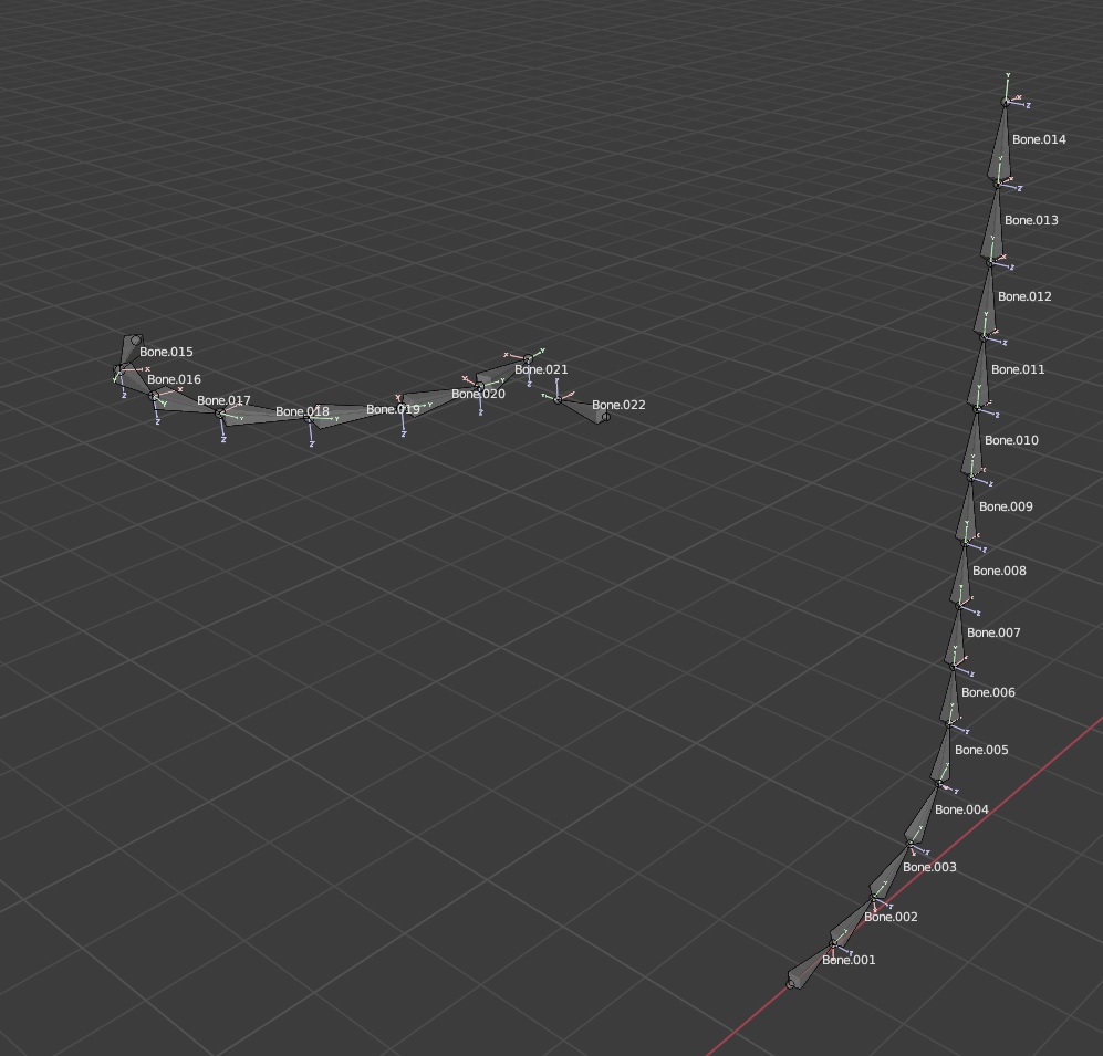 Note that they align exactly with the curves base, and that the head of the bone chain aligns with control point on the curve that is transformed in the shape keys.