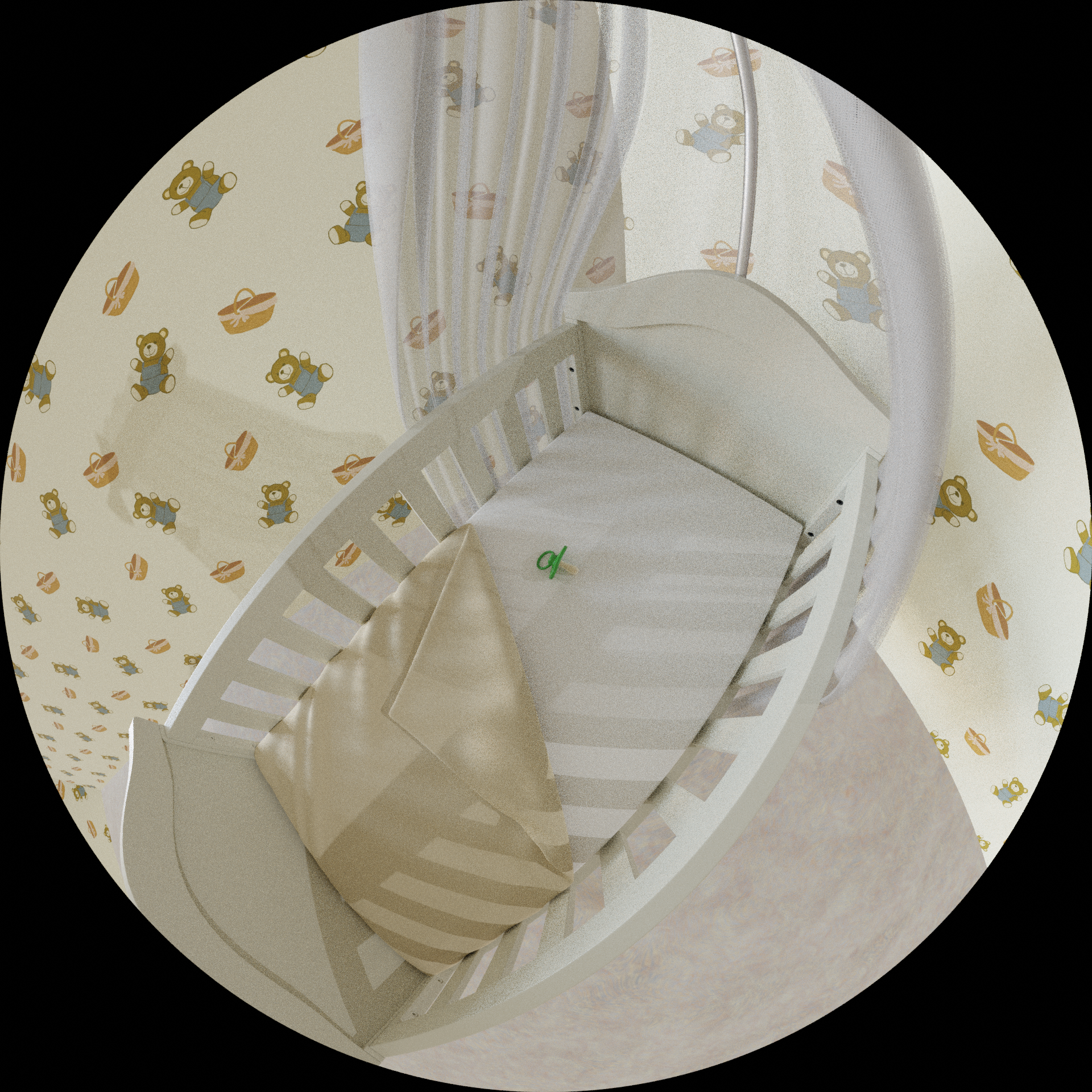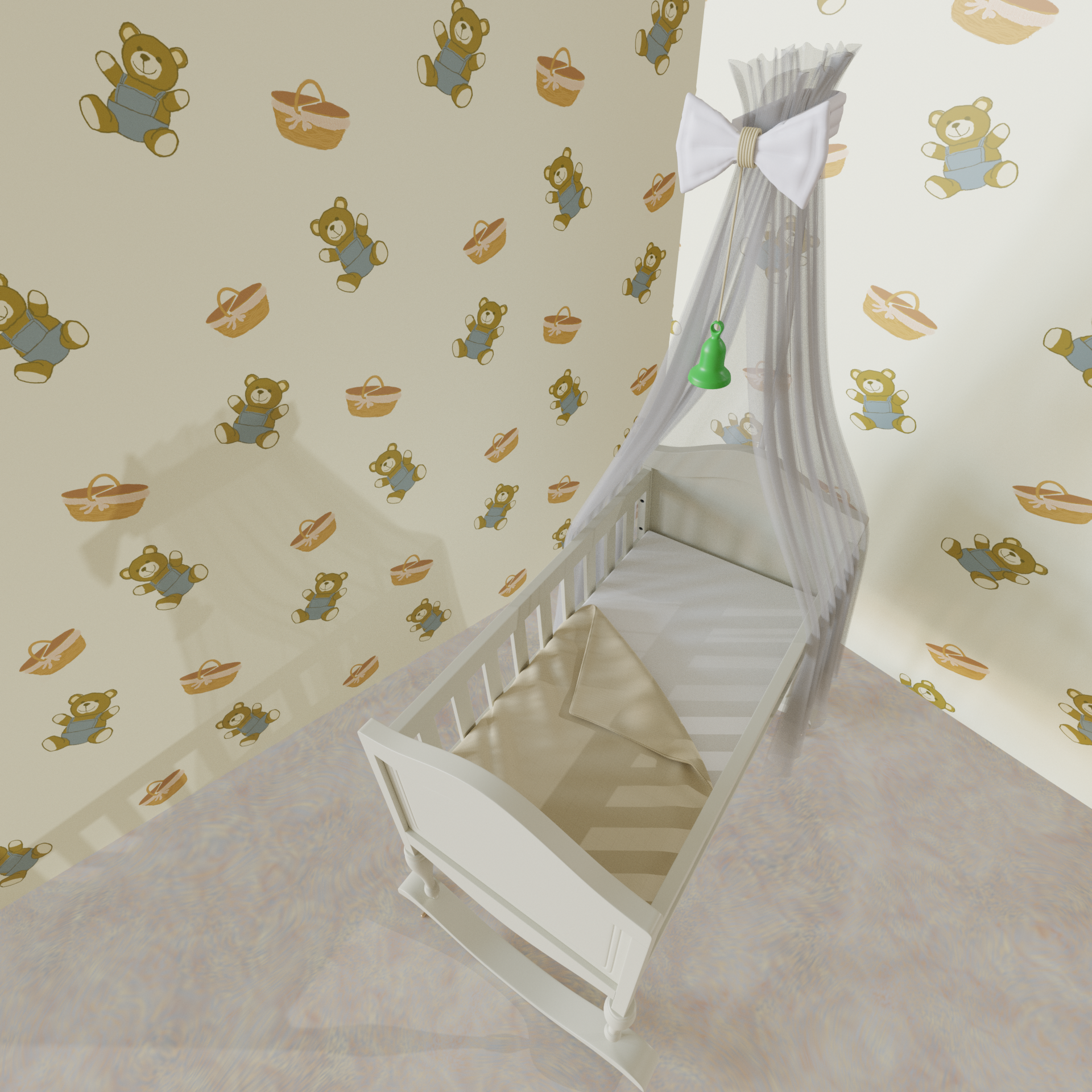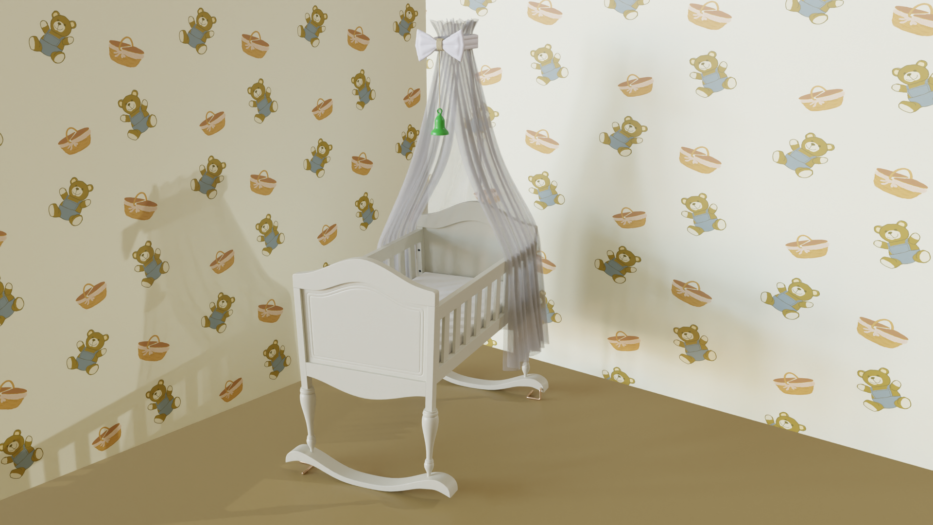 We turn towards the cradle. [scary music...maybe Hitchcock-Psycho-shower-like...].