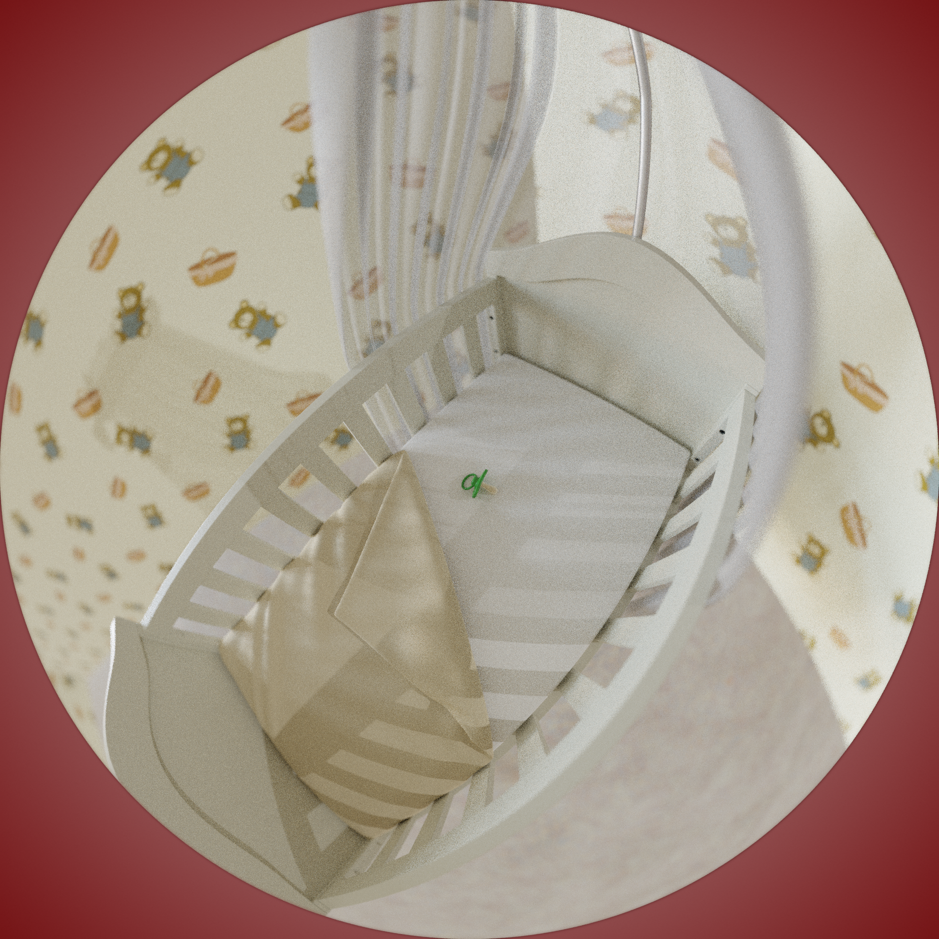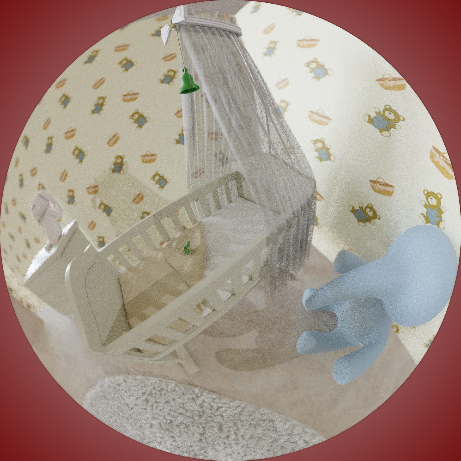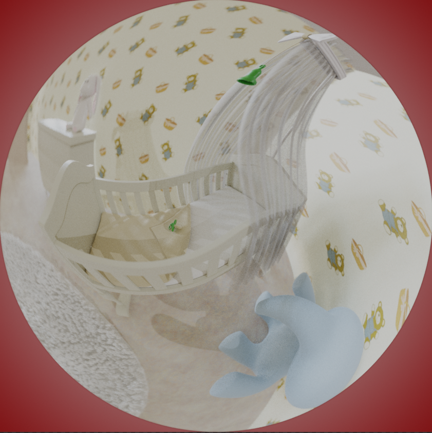 @adrian230 decided not to use the fish eye for this scene; I want this at first glance to just be a pretty baby room, that makes you happy to look at and then....the happier you start, the deeper you'll fall...