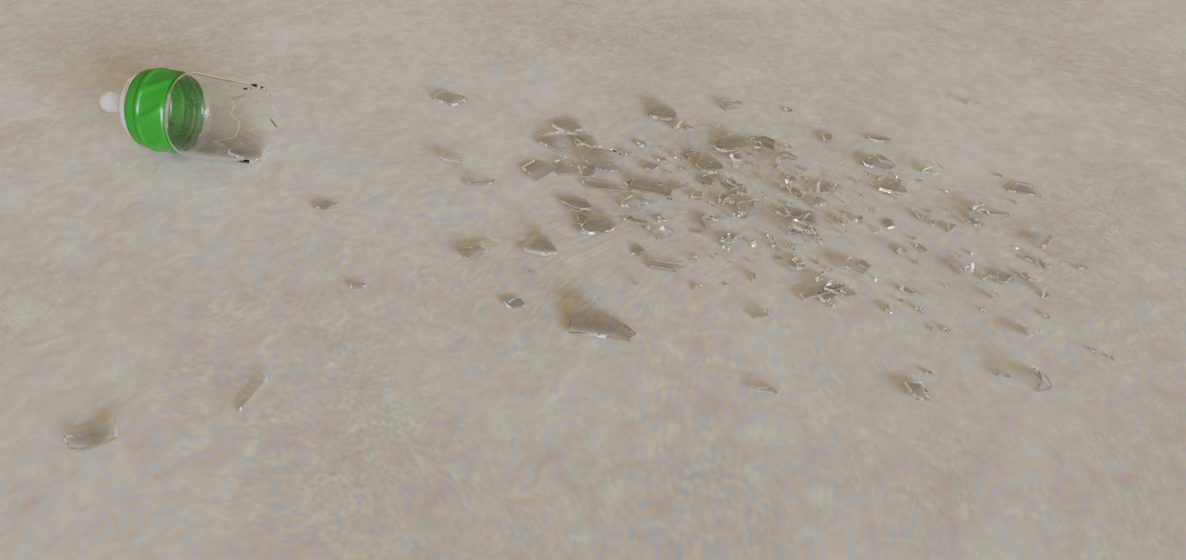 Spent about half an hour on modeling a bottle and then about 3 hours to break it...still didn't get close to making the milk (after countless hours!)...but it's a start (I know: I still have to work on my Shaders...):