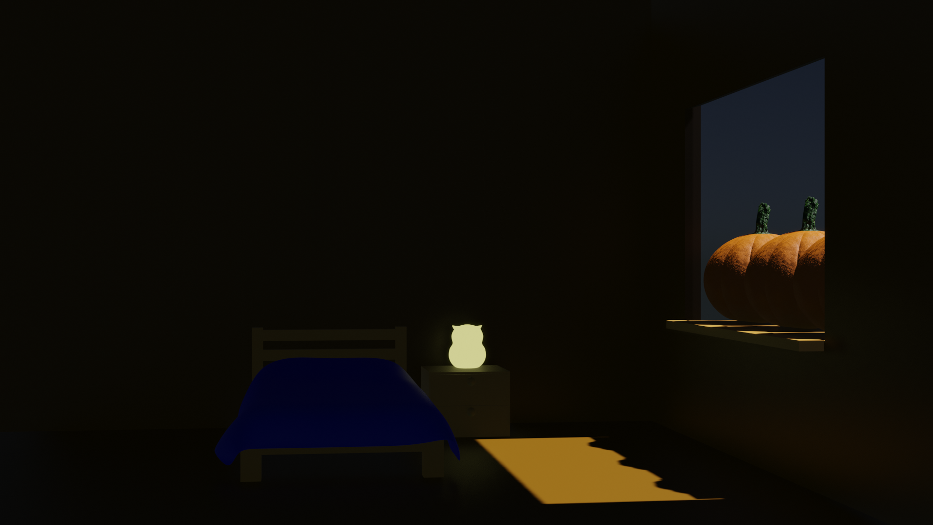 I desided  on a nightlight and placed the placeholder for the pumpkin lanterns. the child has a little owl nightlight