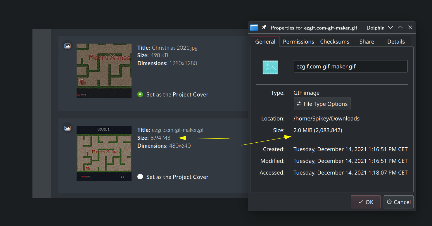 I compressed the Gif so that it is just under 2 MB, but in the Gallery it says it has almost 9...