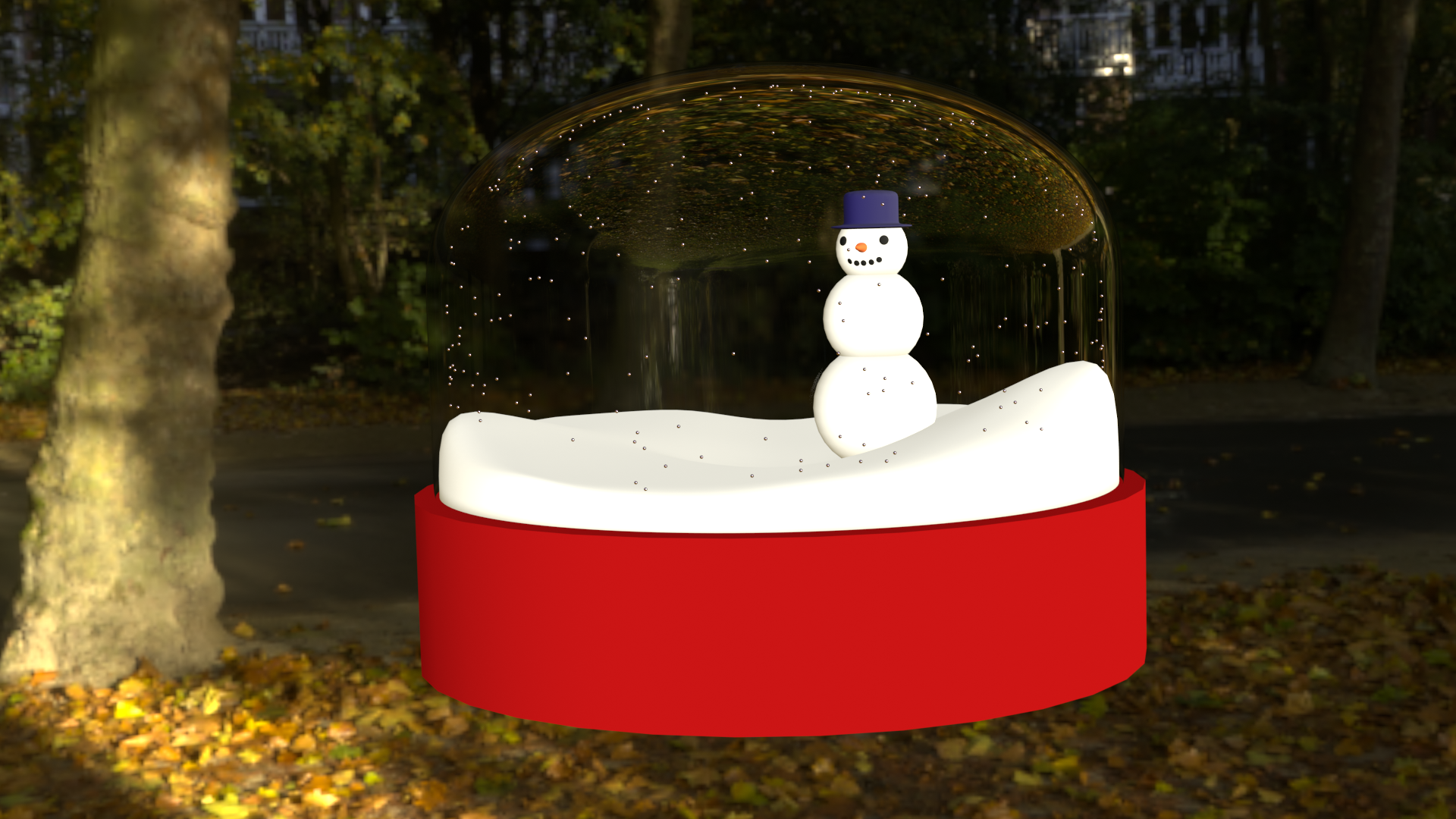 I only added the particle system so far to see how it looks with snow and will fine tune it durnig the week so it looks more like a real snow globe.