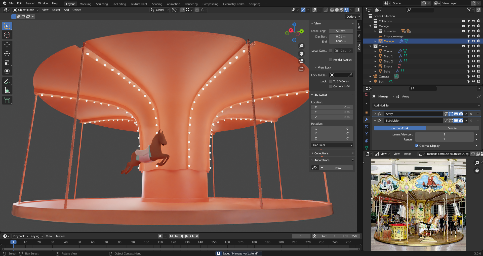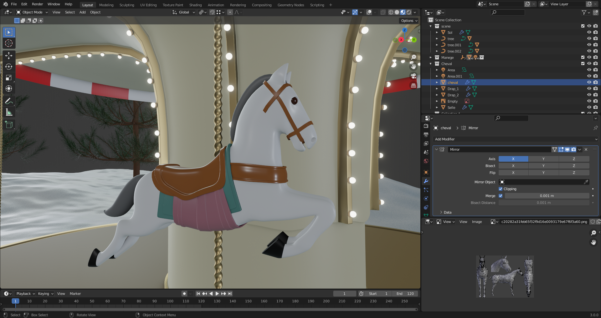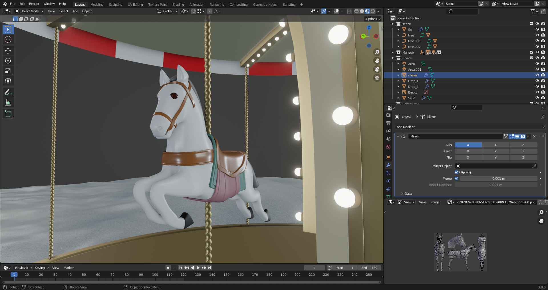The best thing : I tried to make the horse go up and down during the merry go round rotation, and it works as intended. Now, Duplicating horse and puting color variations is next step.