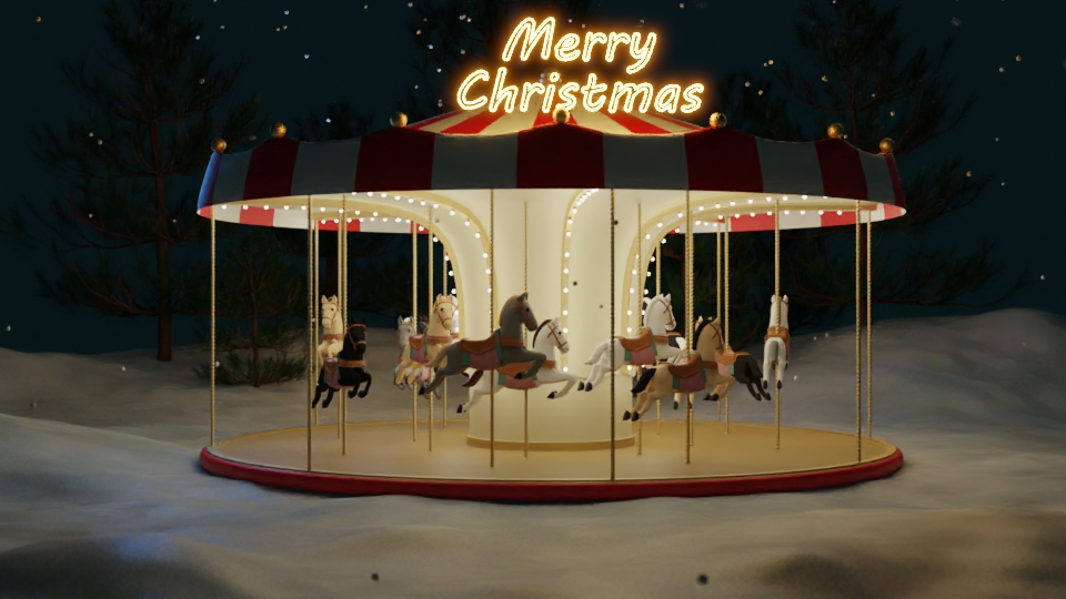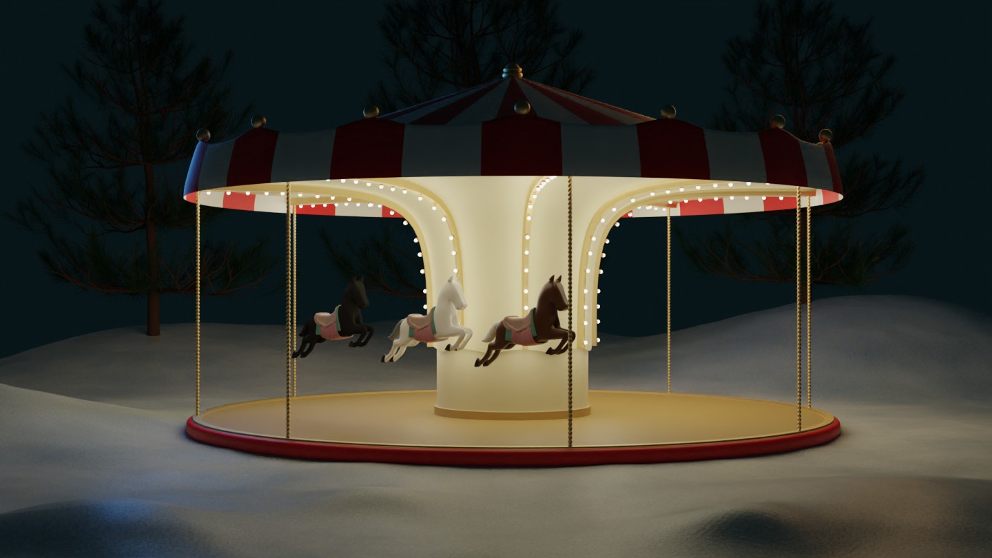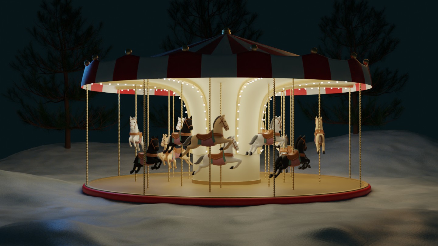 Hello there! So my idea is to model a Merry-Go-Round, that will be in snow, turns, and will have blinking lights...
