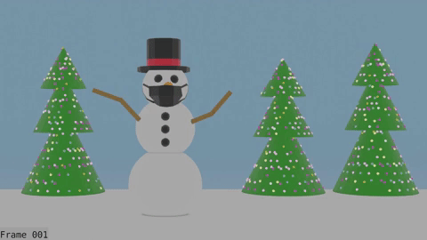 Animation finished! Could still be tweaked forever, but have to quit sometime. Should probably add a few frames in a couple of places, but I want the animation to be smooth and time is pretty much gone. If I have time tonight might see what happens with blurring the trees some and adding some bloom to the lights. Ended up using a couple of shape keys (eyes and mask) and using an armature for the snowman. Last challenge used cycles, lots of compositing, lots of polygons, this one way less compositing, less polygons, evee and has animation. I also must have some of the. worst internet in the world, it is definitely challenged uploading a 7 sec video, takes multiple tries.