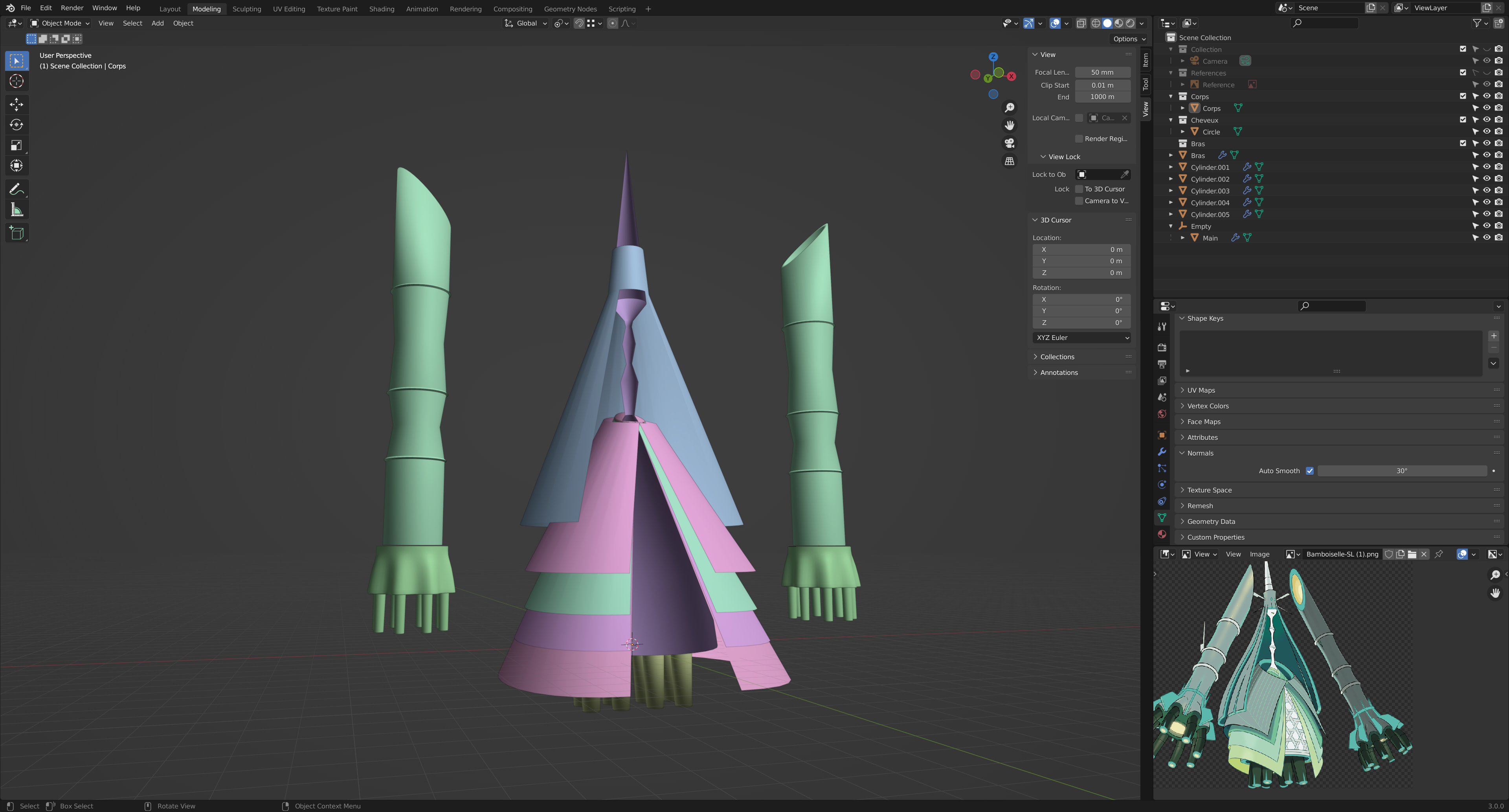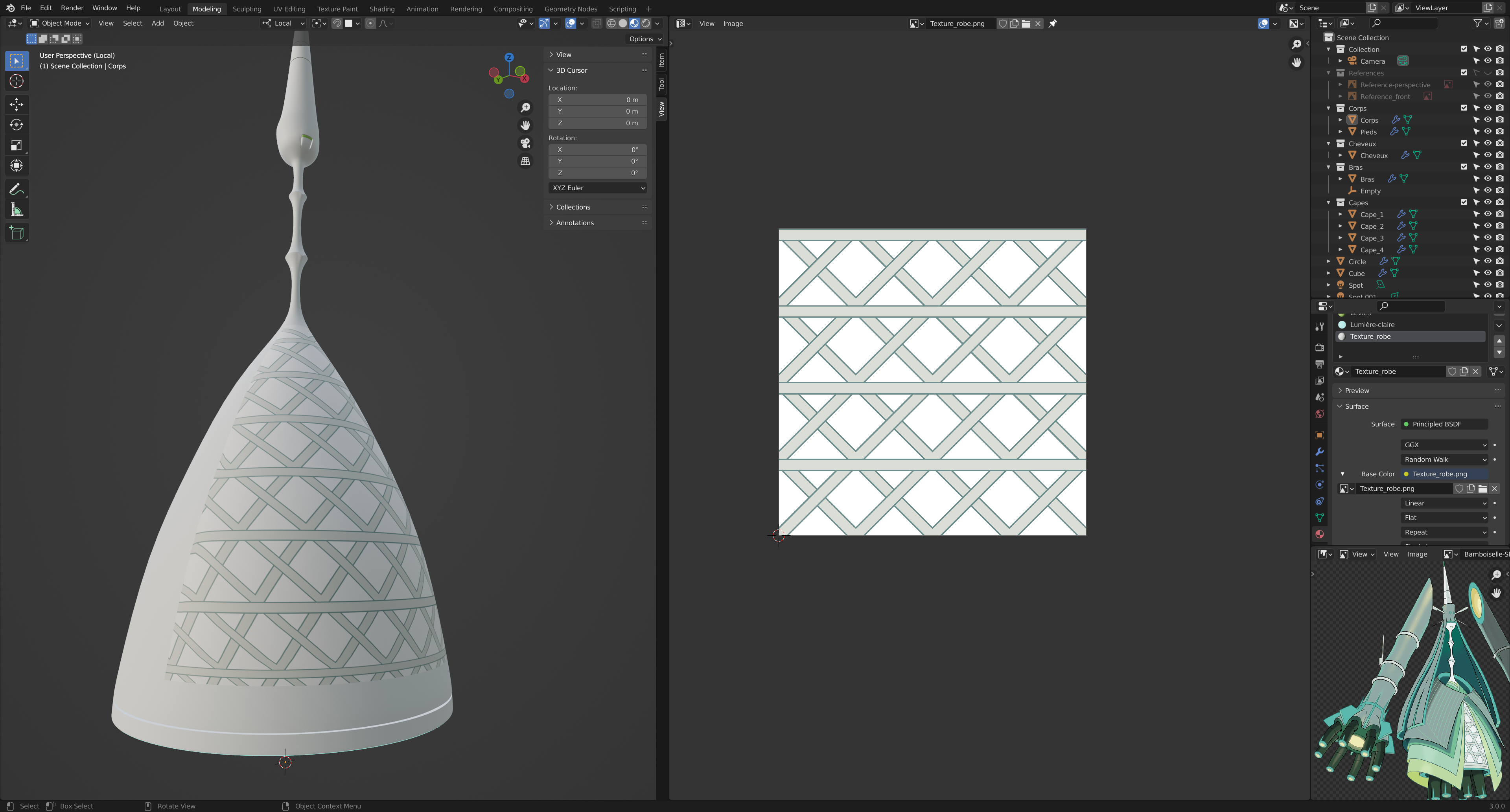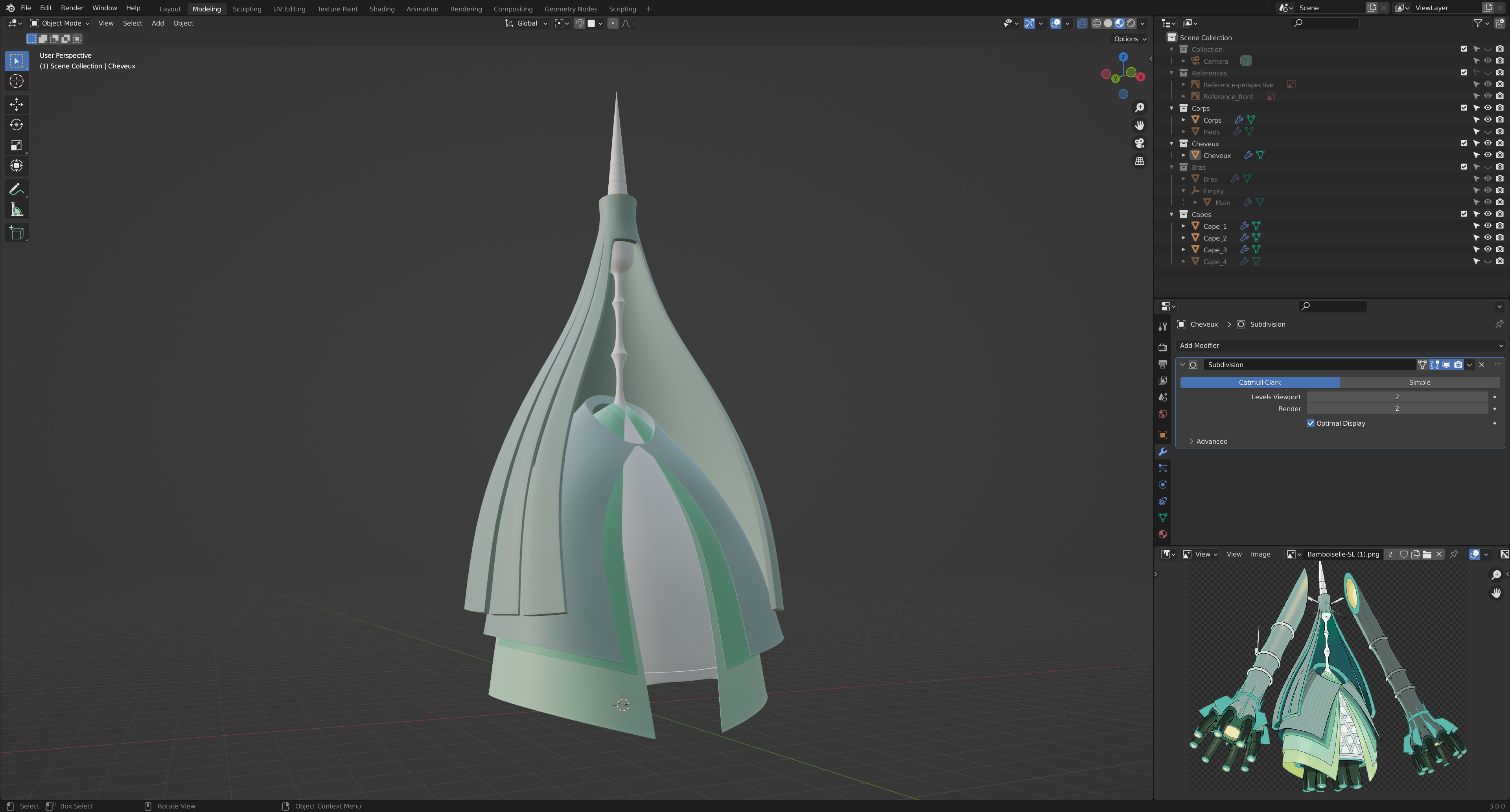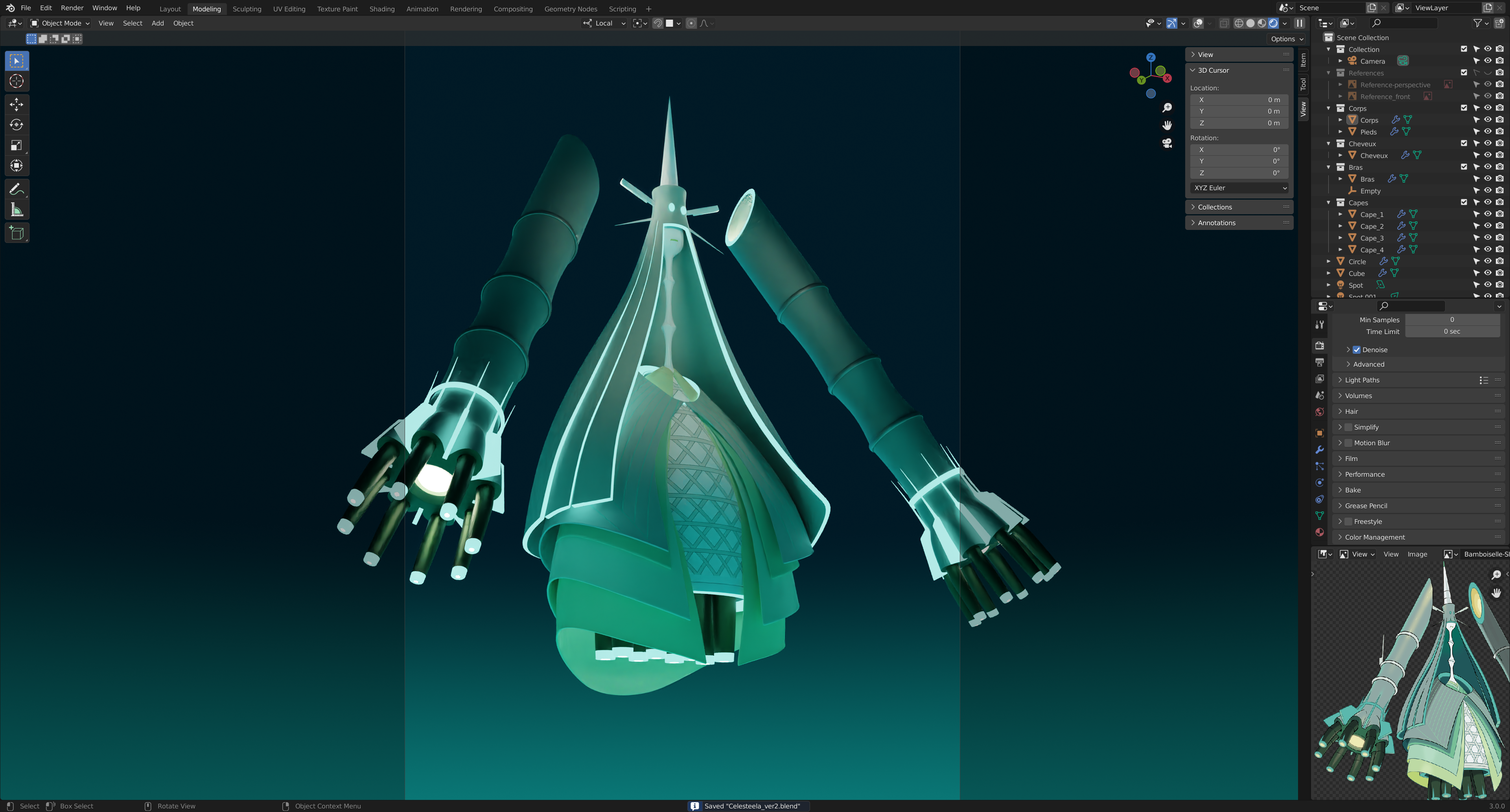 Also added lines on the first "cape"... Starting to work on the lighting. Making final scene tomorrow.