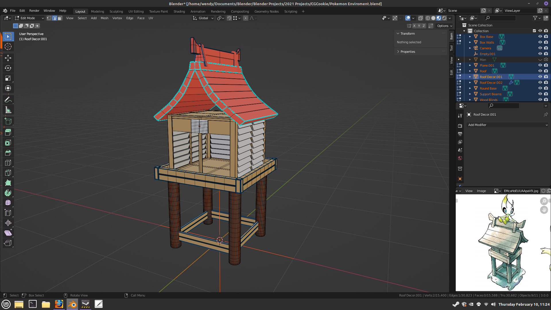 For the background you could import a nice forest picture as a plane behind your model, and just use depth of field settings with the camera to blur it out. Again I think that could work well on a project like this! 👍