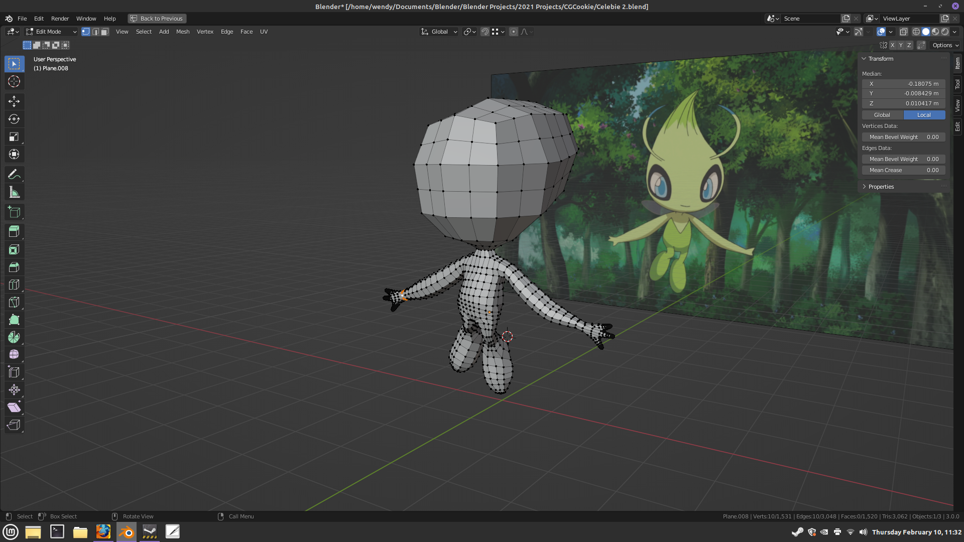 This is my new base for Celebi. I used the character modeling method I've been learning from those videos you recommended @adrian23. (Thanks so much! 😄) It really helped me with the body. I still ended up doing some sculpting on the head. 🤔Now I need to figure out how to color it and pose it. and also make a nice enviroment. Any thoughts or comments are welcome. 😬I'd like to improve it more if I can. My goal is to win the challenge but I also know there are way better modelers out there. 😅So we'll see.