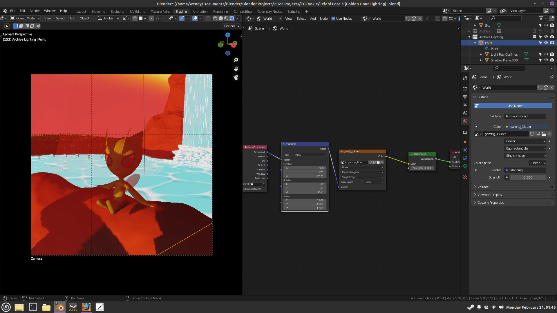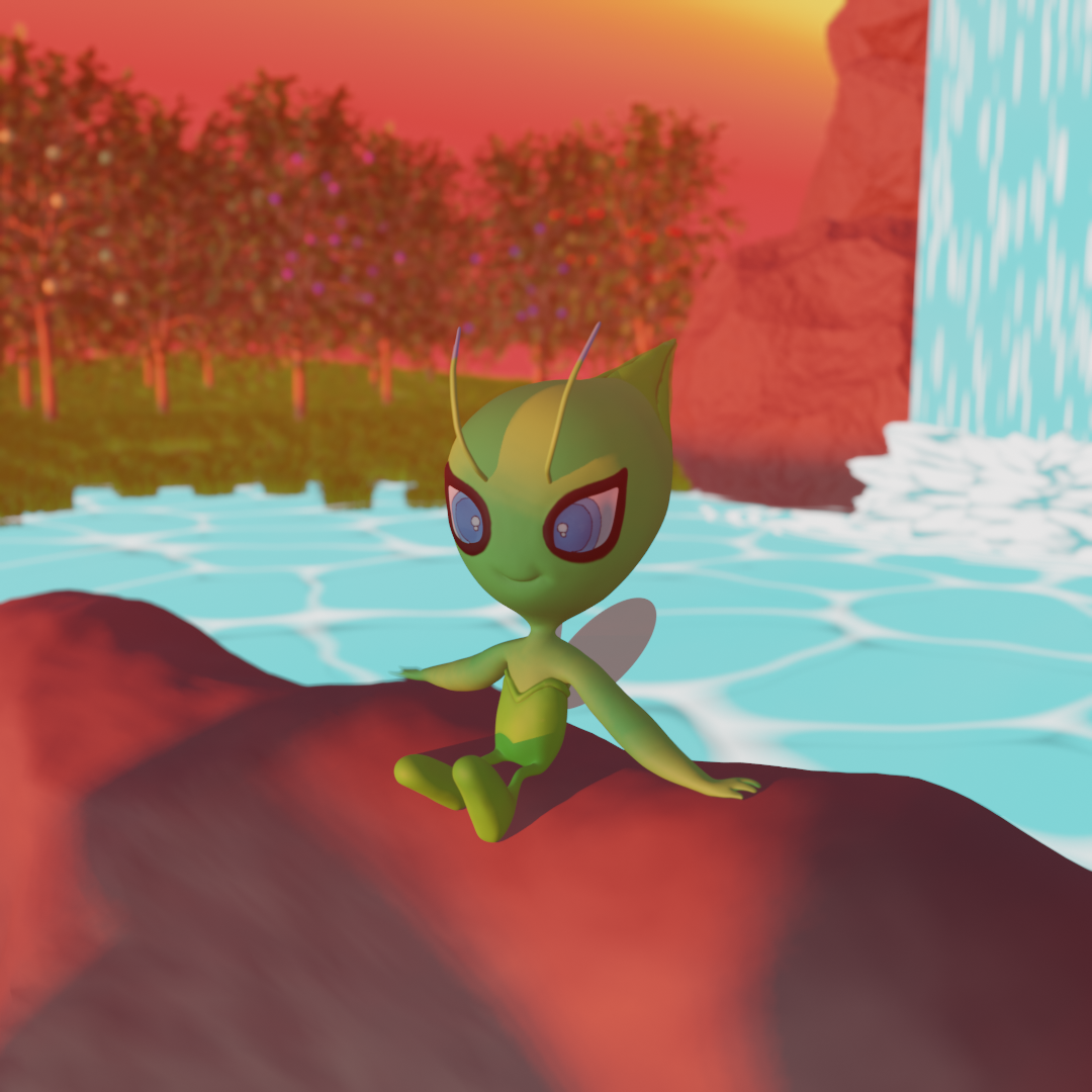 I moved the sun around to the other side of Celebi and brought it lower to the horizon or does it need to be on the other side of the waterfall. And I'm not sure how to get the shadows to lengthen...