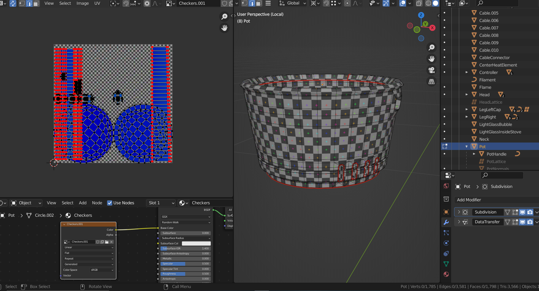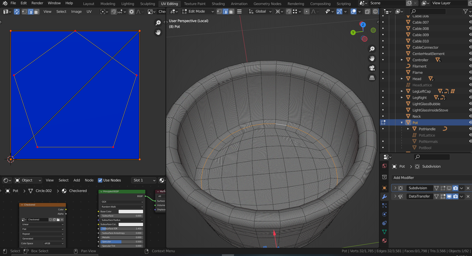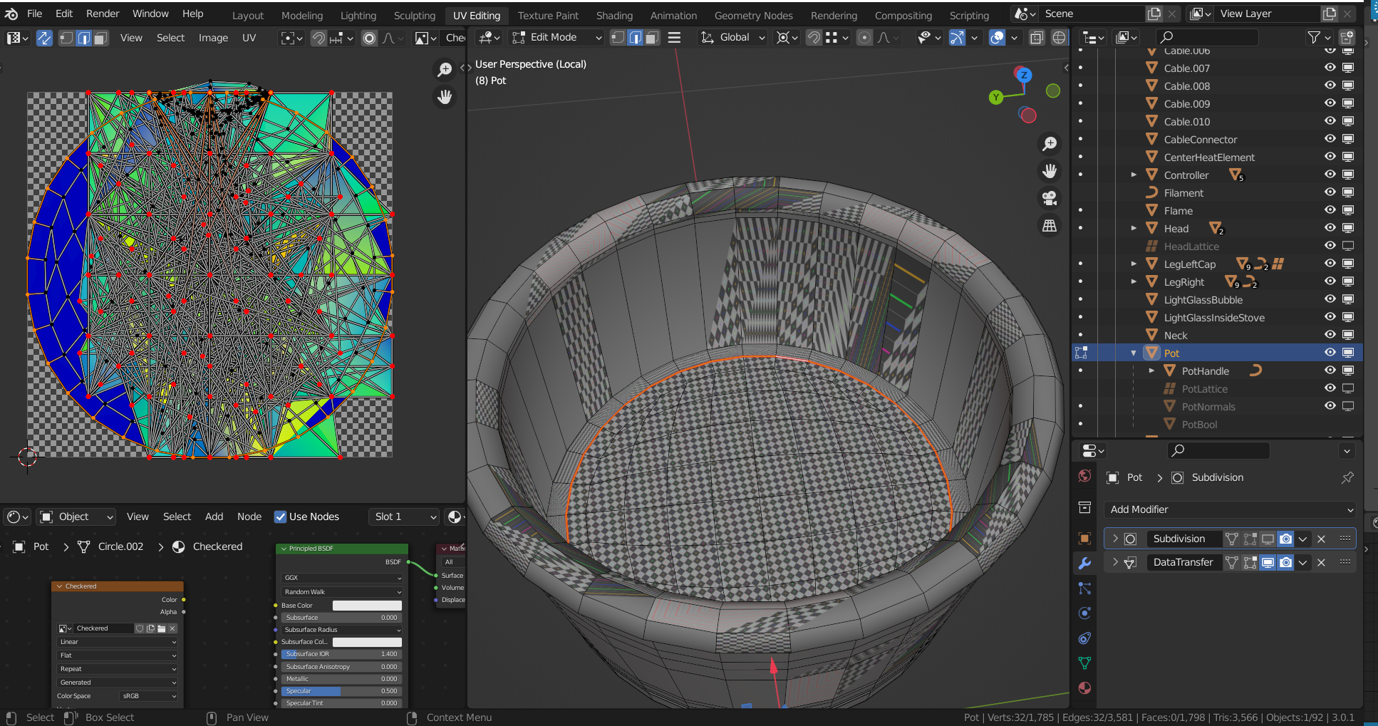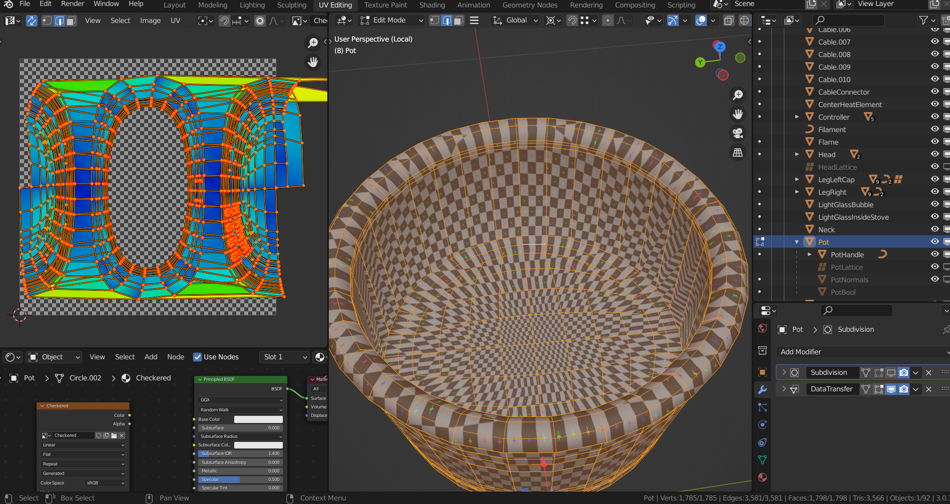 OK I am home sick with COVID, and feel like I am losing my mind. I have been working on Pothead for about 3 weeks now. I FINALLY got to the UV Unwrap and realized I had one seam wrong. So I selected the seam and unmarked it, but it stayed on the grid. So I selected all the seams and unwrapped them. Then selected the entire pot and selected Reset.