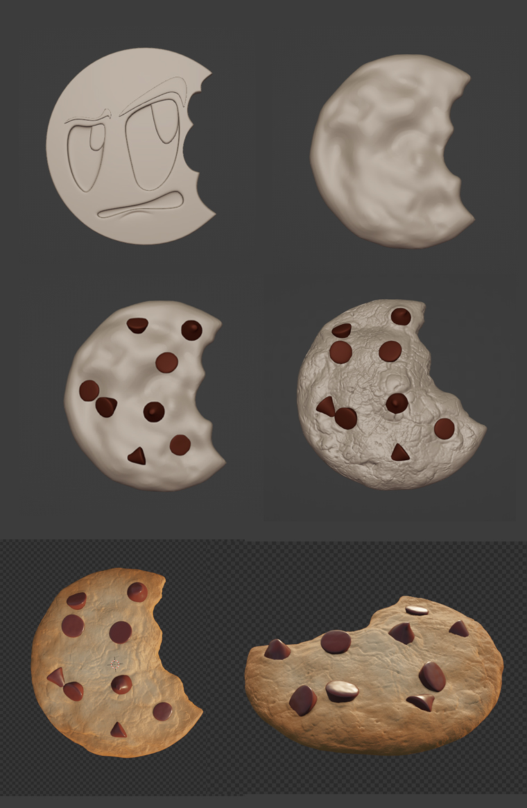 wendy10698 idea, I made the cookie based on the CG Cookie logo and not worrying too much about the bitten bits detail as it will face away from the camera. Feeling a bit naughty destroying CG Cookie logo like this haha.
