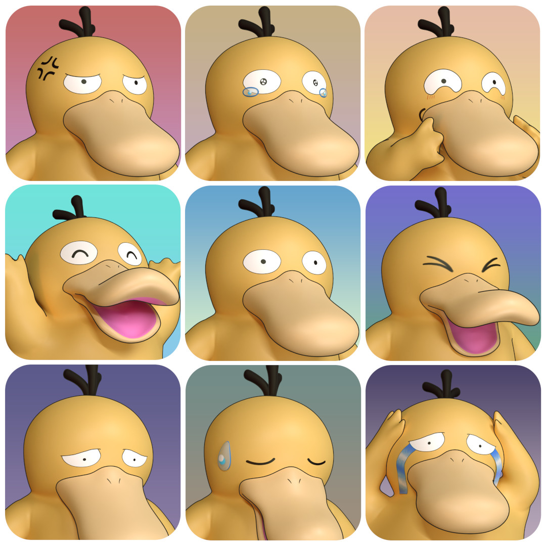 After making bunch of poses and facial expressions, I made a collage of psyduck.