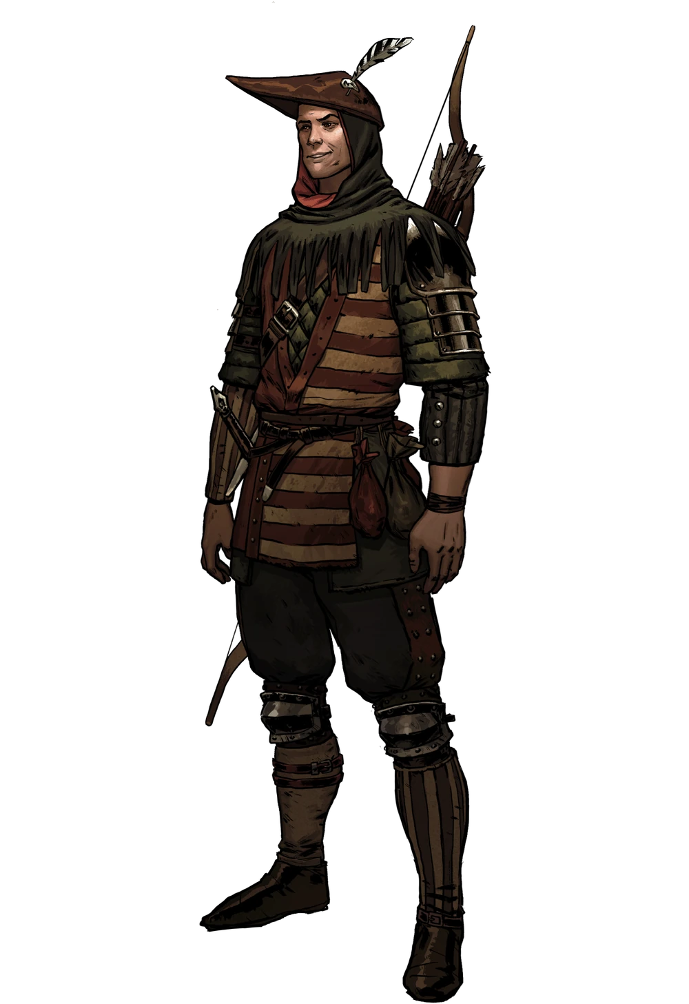 • Ambiguous design loses relatability. The shoes lack detail that would connect it to reality. They're like lumps of leather without any seams necessary for real world shoes. Of course fantasy designs have a lot of freedom to be unique but they still need to still make sense. Often I see shoes turn out ambiguous like this as if an afterthought: "No one will notice the shoes so I don't have to add any details." But in fact it is noticeable: