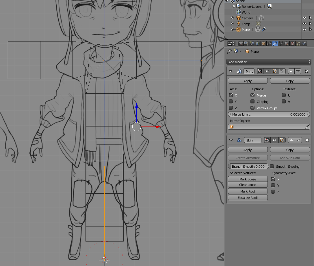 When the mirror modifier is placed above the skin, it doesn't change the mesh at all for me. As in i still see the added/extra geometry in the mesh. If I continue with the tutorial, weird tearing happens in the middle of the mesh.