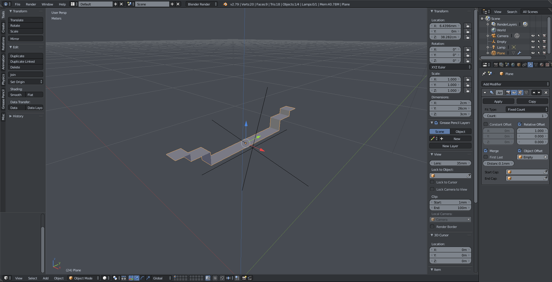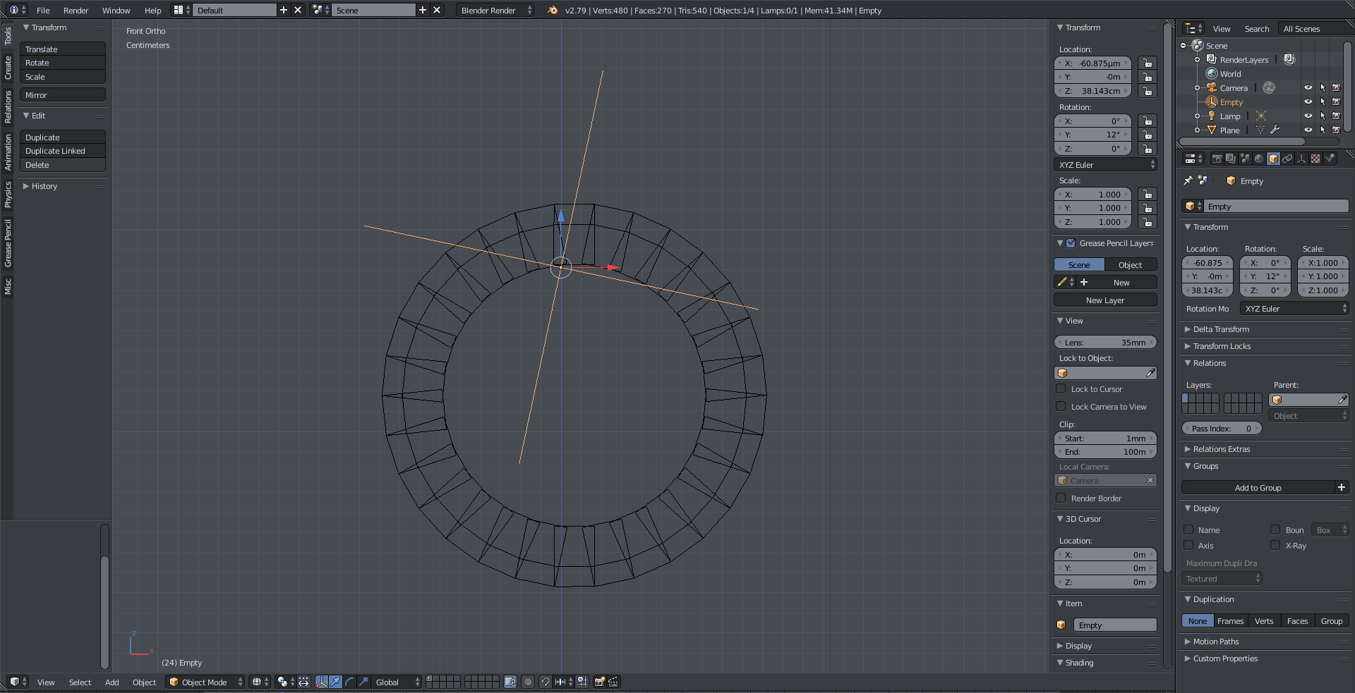 1. This is my (very) basic model for the rim, with a non scaled empty assinged as the object offset in the array modifier.