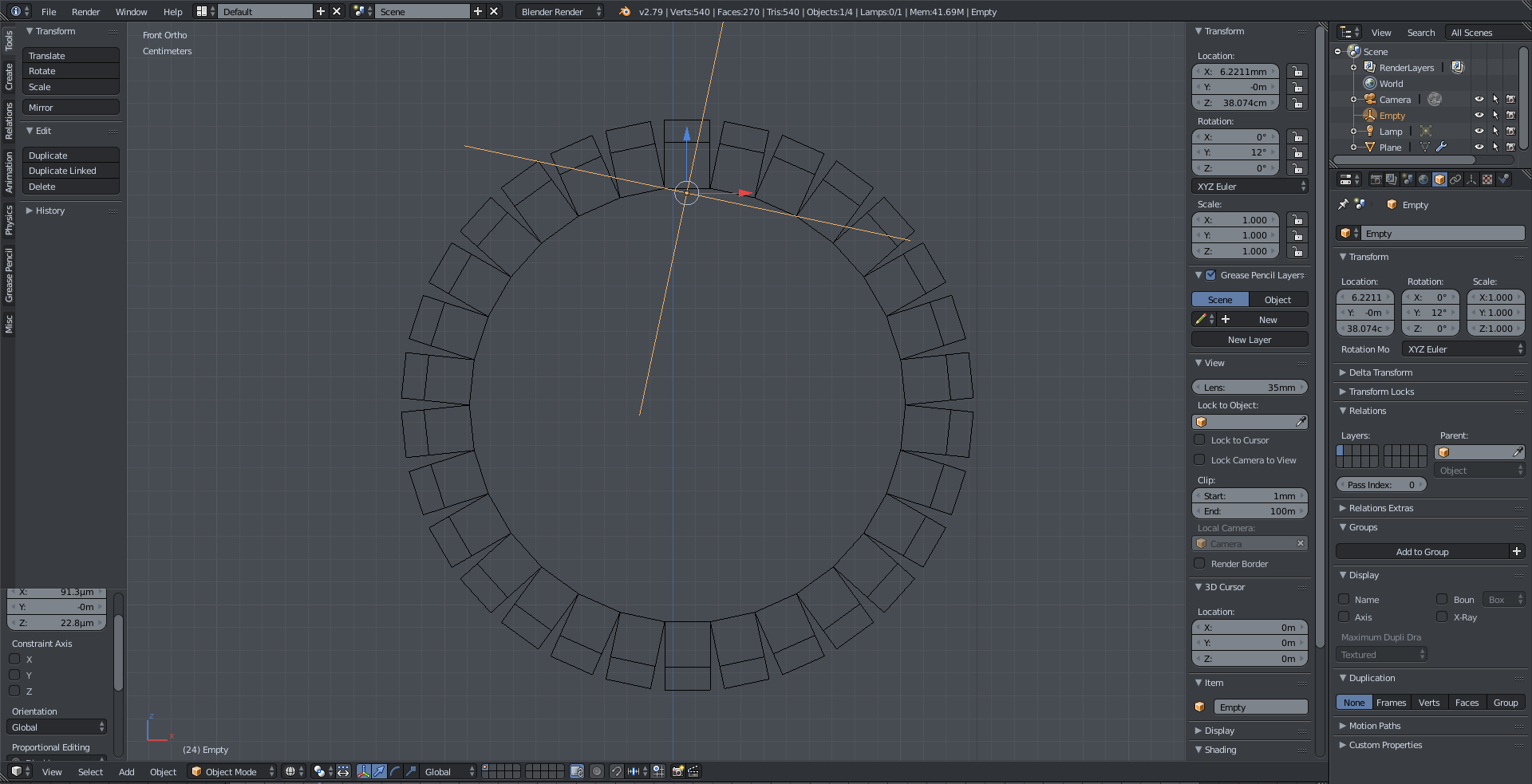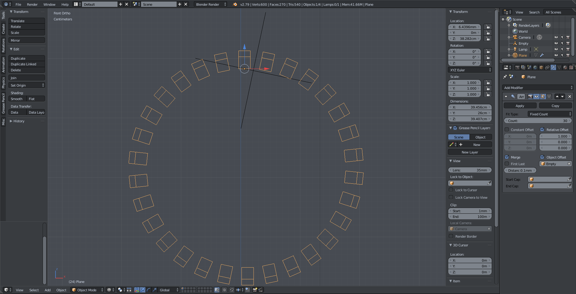 2. When I now increase the count to 30 and rotate the empty for 12 degrees (360 (degrees) / 30 (number of dublicates)) it creates a circle.