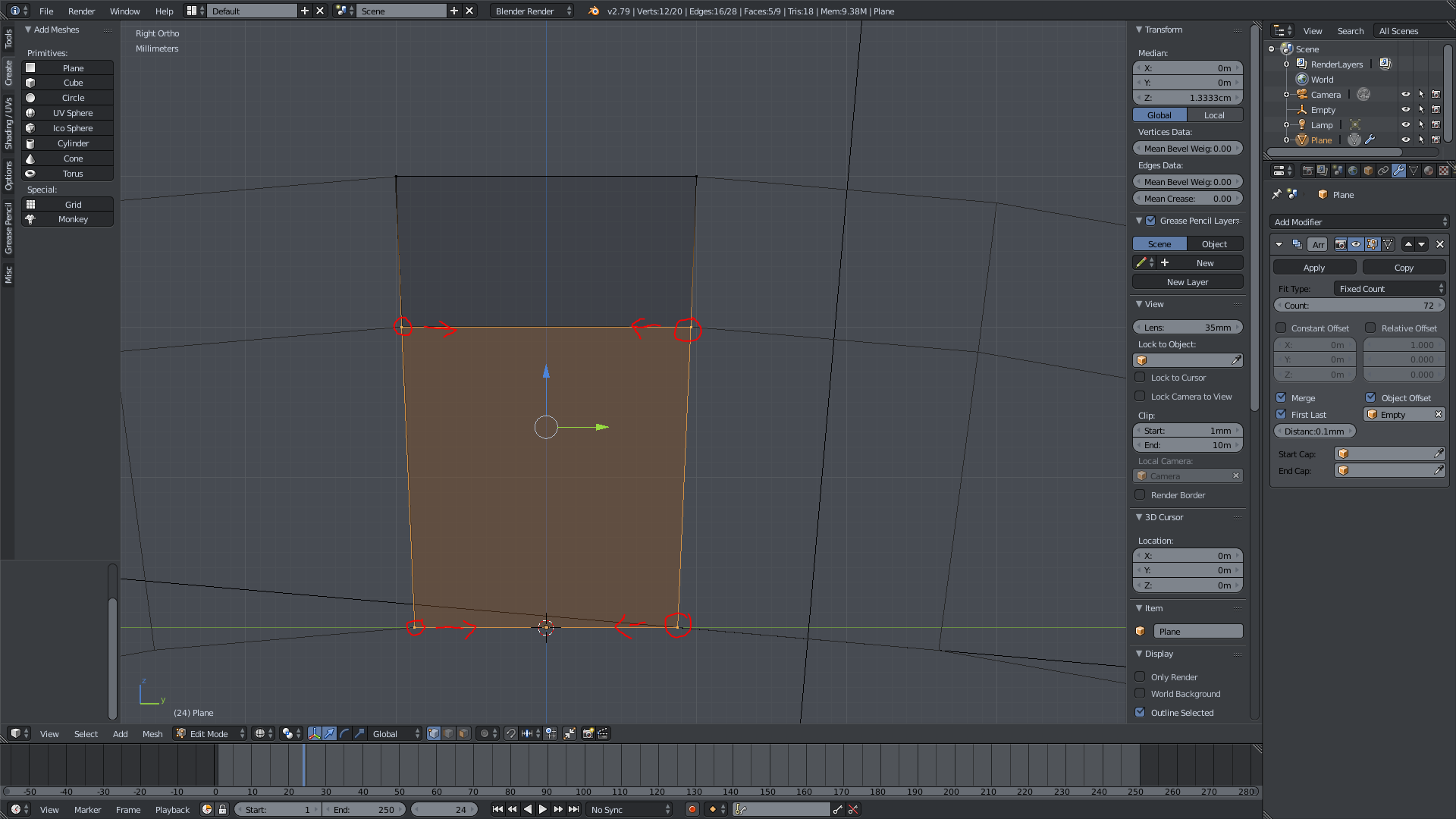 3. Now, when I move the empty around, I can (as long as merge and first last is enabled) create a round outer circle, but then the inner faces overlap which creates a few problems later on in the modeling and texturing process.