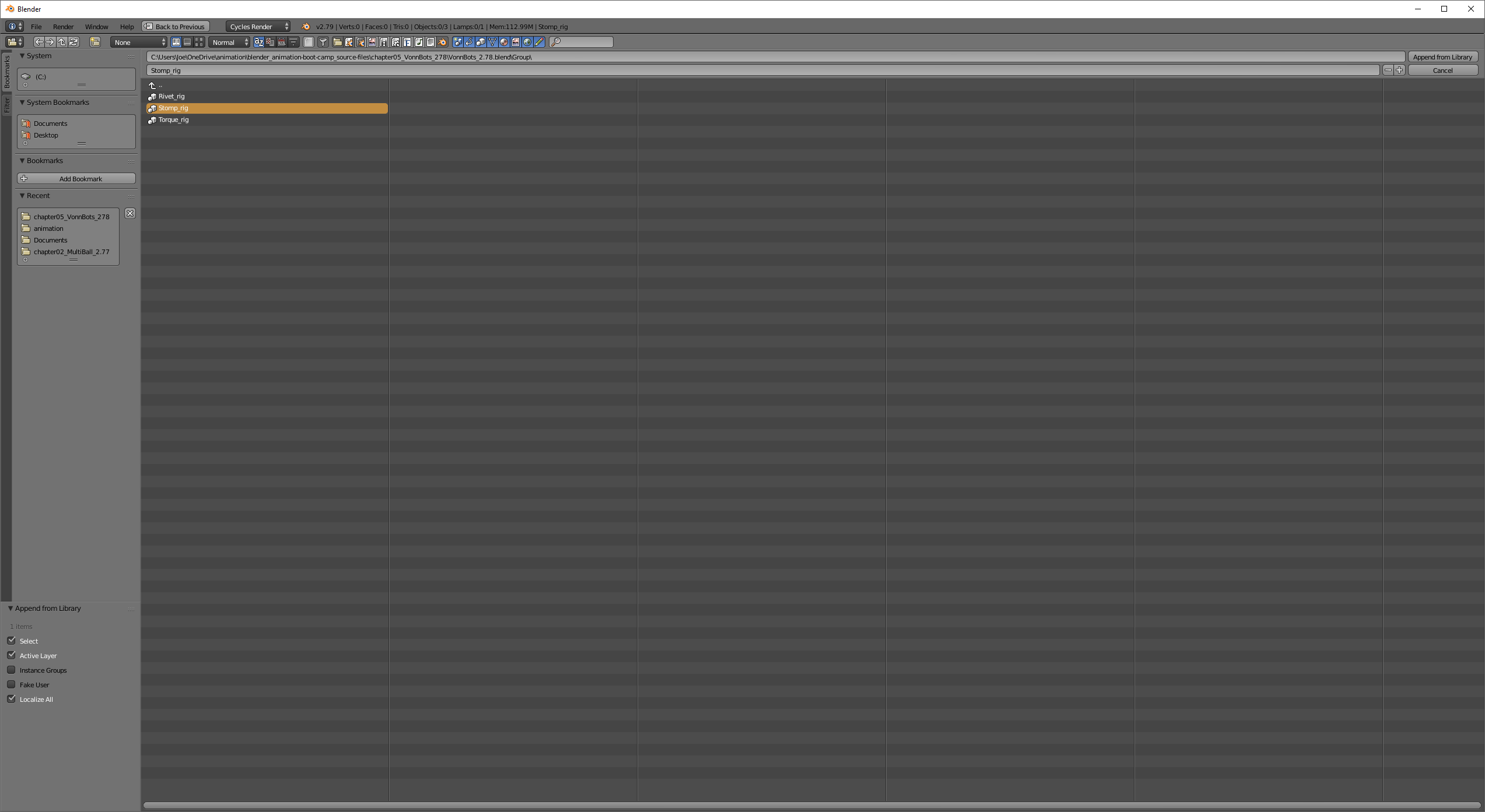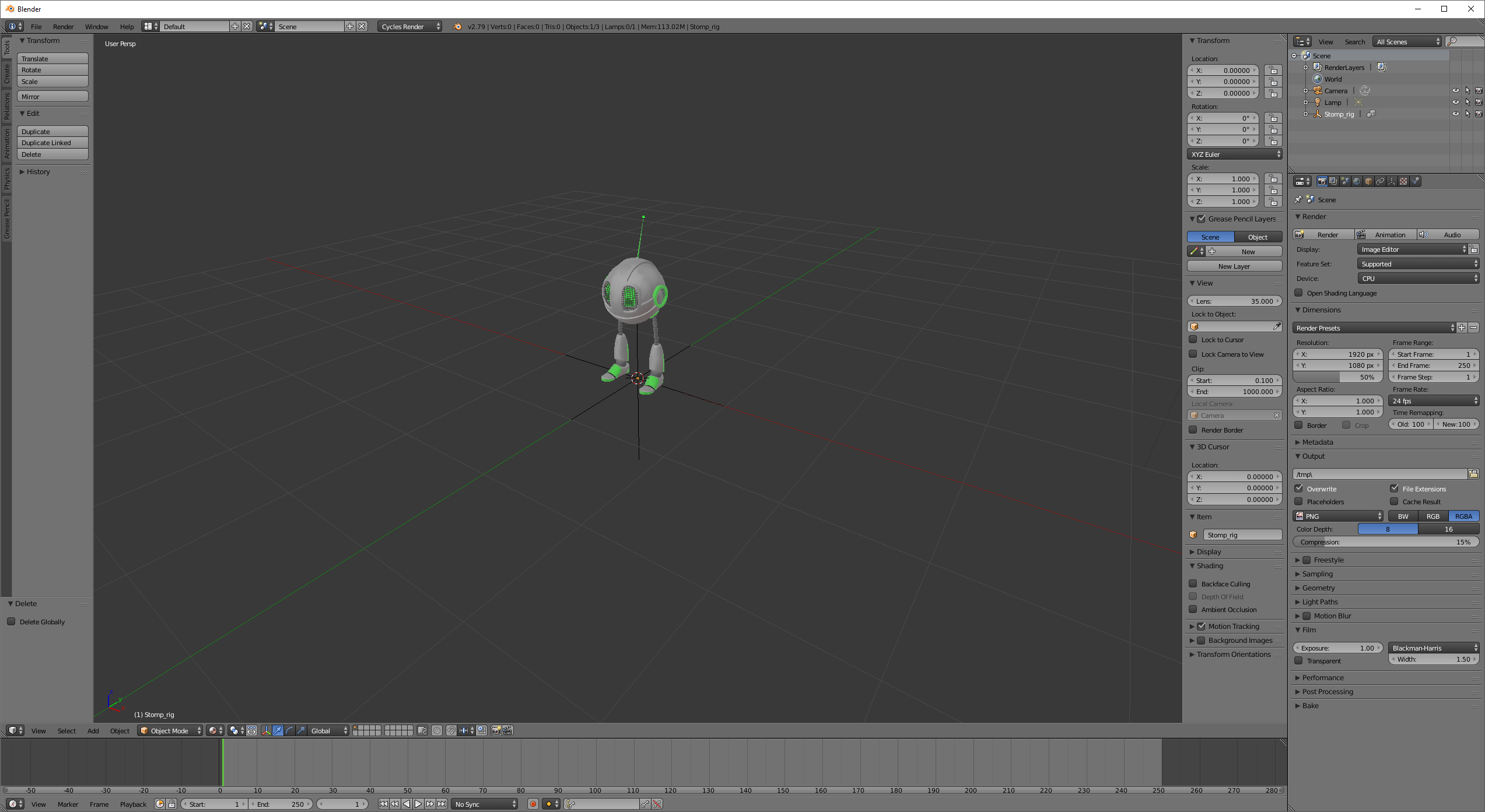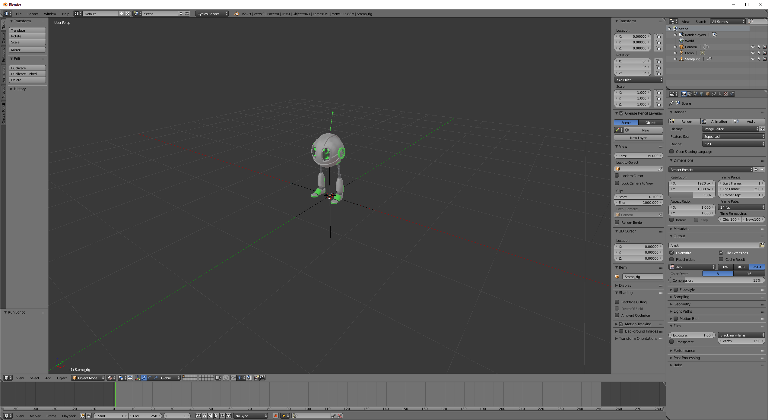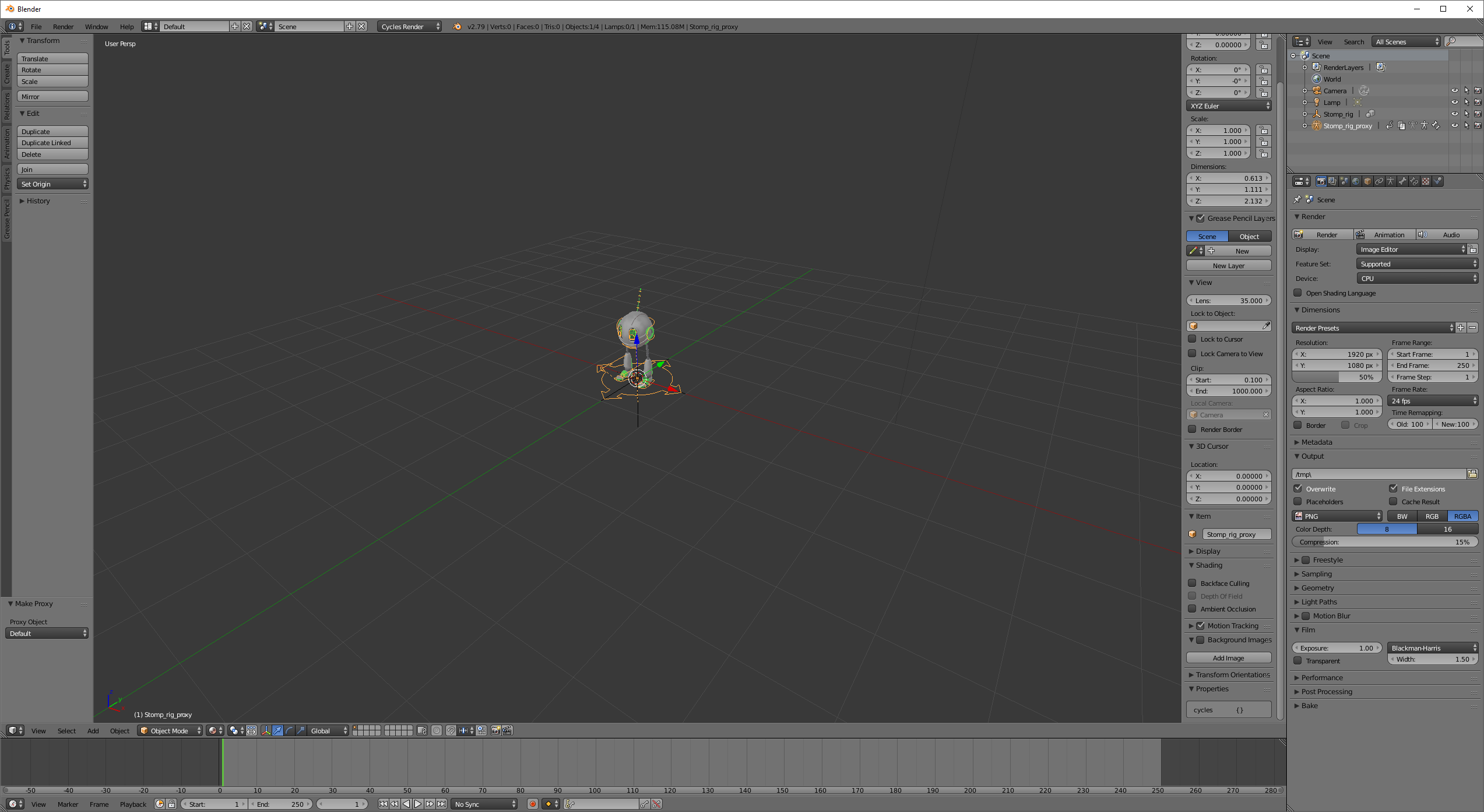 back in 3d view::UI doesn't come up still and no rig will allow me to move stomp around