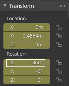 4. With your mouse over this field, press I. This will create a new keyframe in place of the old one, which will overwrite (and save) the old rotation values.