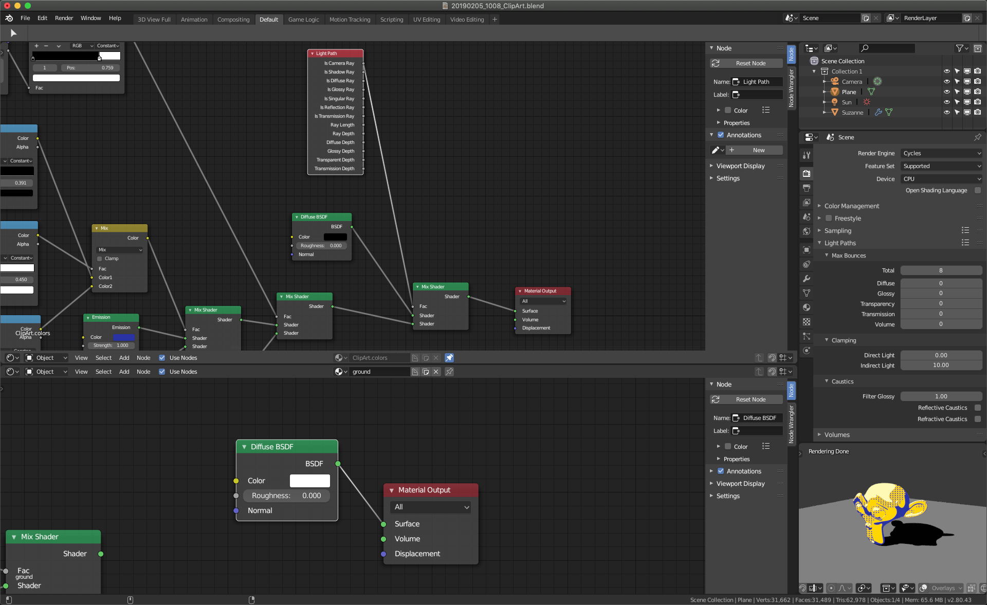 Good question. The main thing to keep in mind is that the clipart shader is using emission shaders to generate solid colors and minimize realistic shading gradients. This also means that the object is emitting light and will not accept shadows.