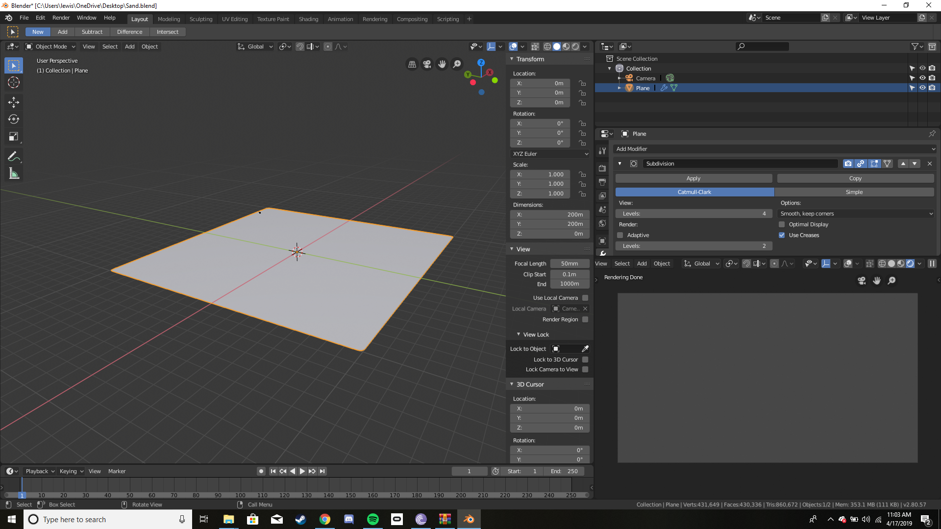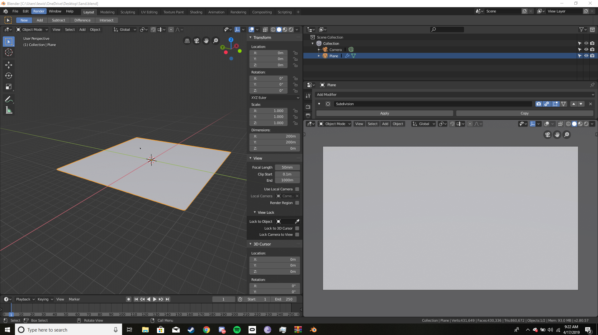 Ahh ha! It's because you're camera is zoomed way in and all that's visible is the grey plane, appearing to be a blank render. Just move the camera around and you'll see the scene rendering (dull and grey, but rendering nonetheless)