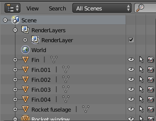 using version 2.79; I cannot identify any way to replicate the collections function in the outliner; it is therefore impossible to group the components of the rocket into a single asset. Here's what I show on my screen: