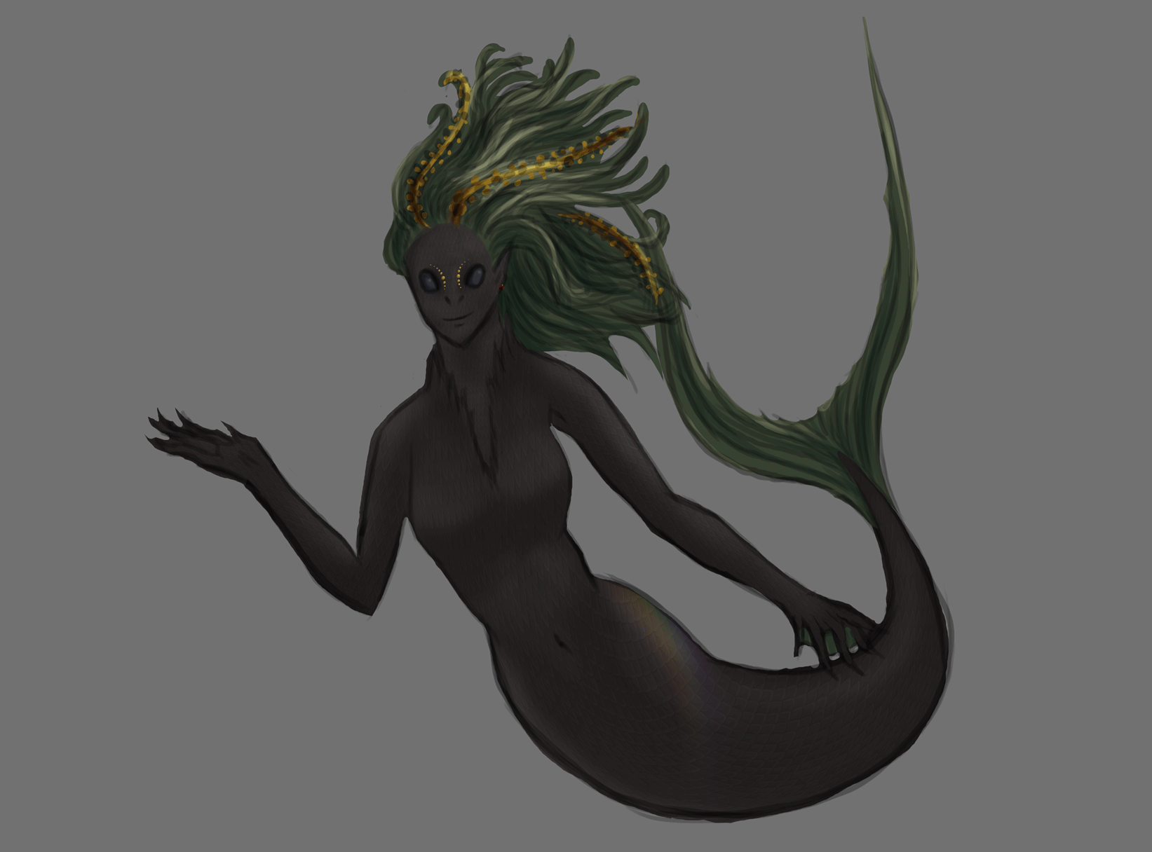 I have chosen the concept below for the Game Character Art (real-time) section. It doesn't look the most impressive, but I'm hoping that the scales refracting light into a rainbow would not only look cool but be possible in a real-time render engine. It's based off the sunbeam snake, not a rainbow snake as I've mistakenly said before. I was confused. Maybe I'll add more jewelry items, like piercings in the tail fin.