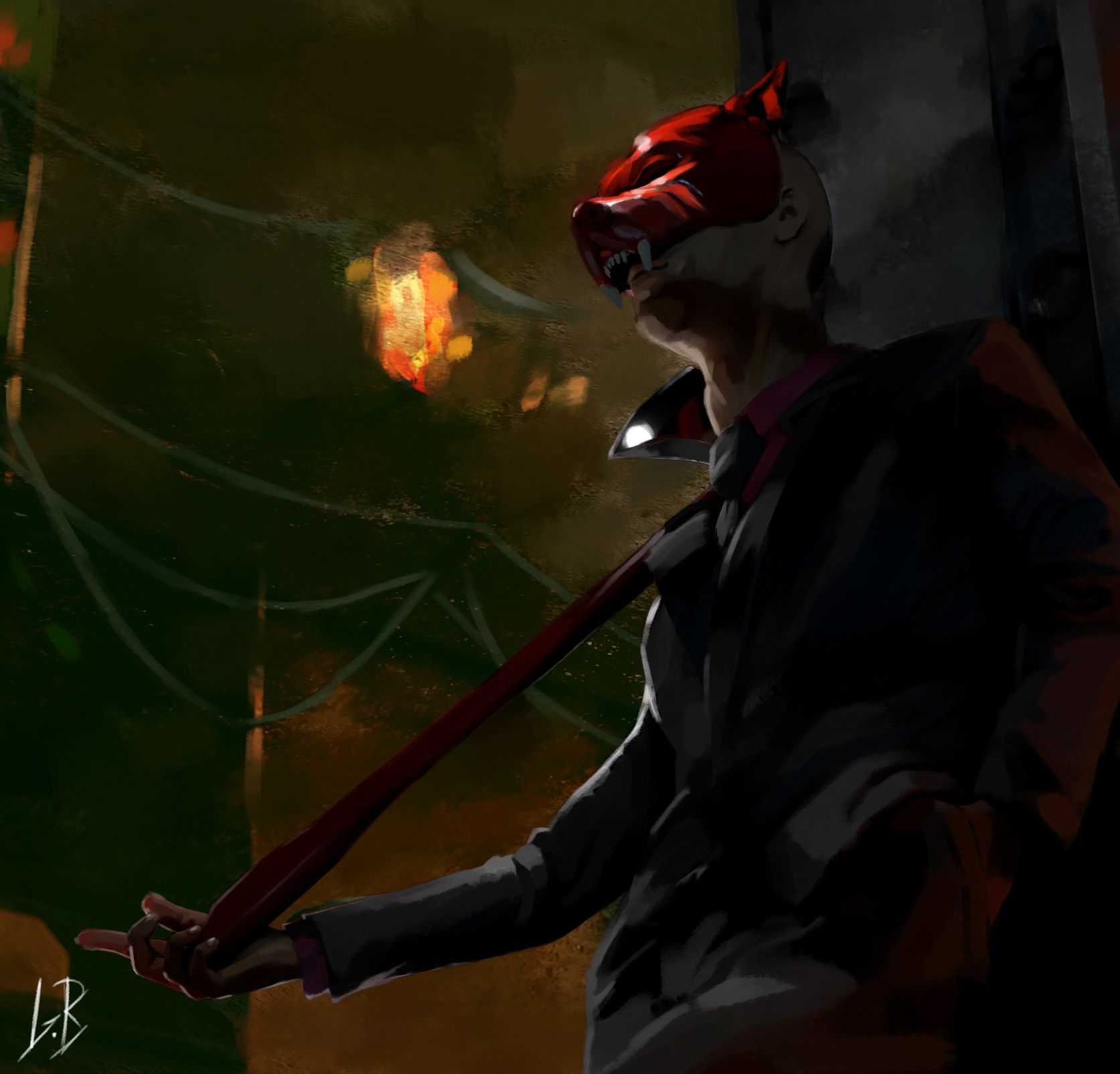 It looks really cool and I love the background. I think you should define the weapon more though. Good work!