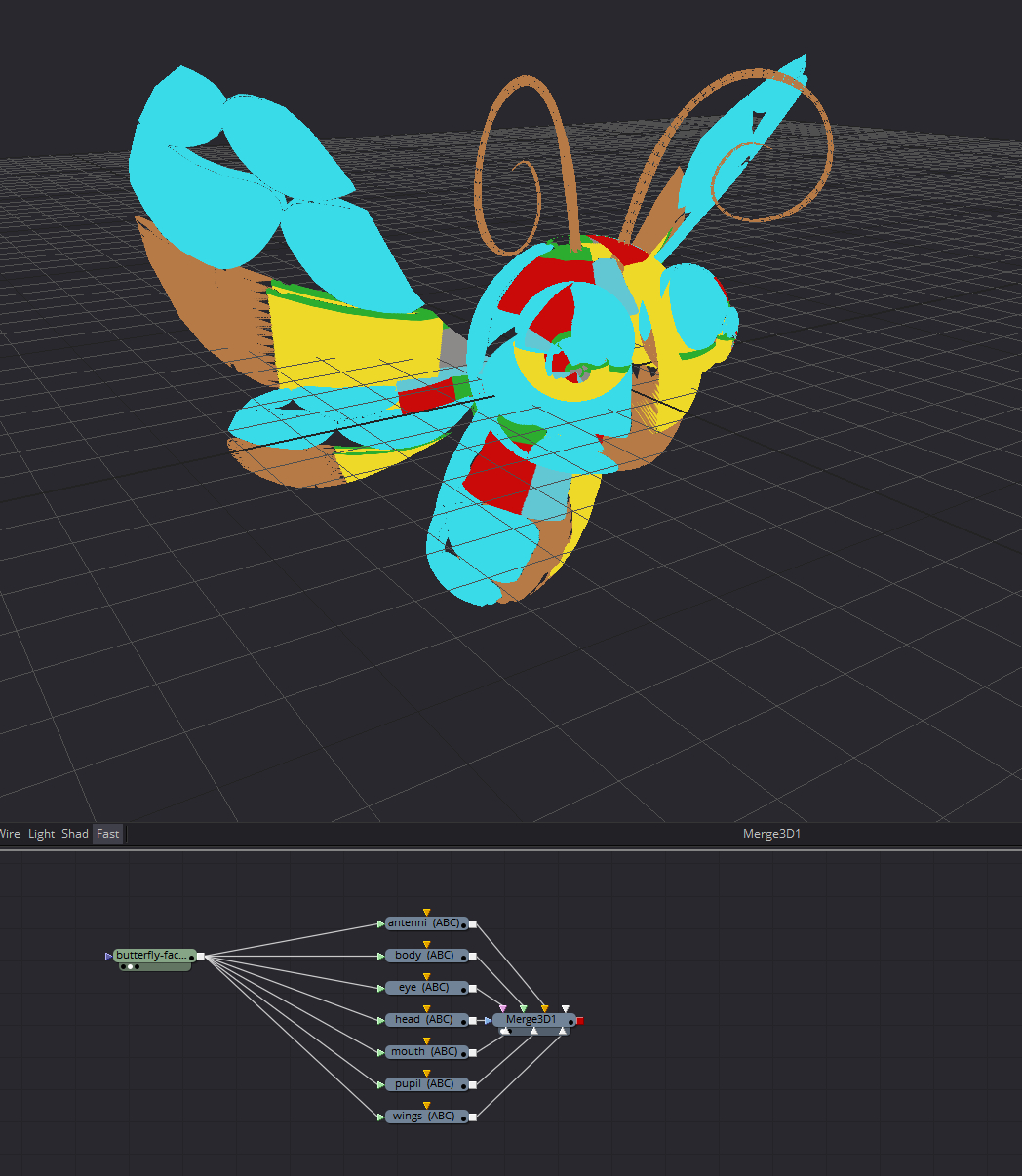 I have an alembic scene (.abc) file. It's a Butterfly with an animation on the wings. I haven't made it myself, so it came with UV-maps for each different object --> wings-eyes, body, face, etc,...