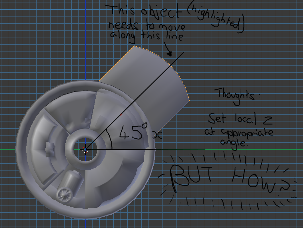 I have a project I'm working where a panel extends out of a cylinder (The cylinder is lying on it's side), it's at a 45 degree angle with the centre but I want to make it so that the section's local Z axis is set at a 45 degree offset, so when I grab it along local Z it extends in line with it's housing. I can't figure out how exactly to do that though.