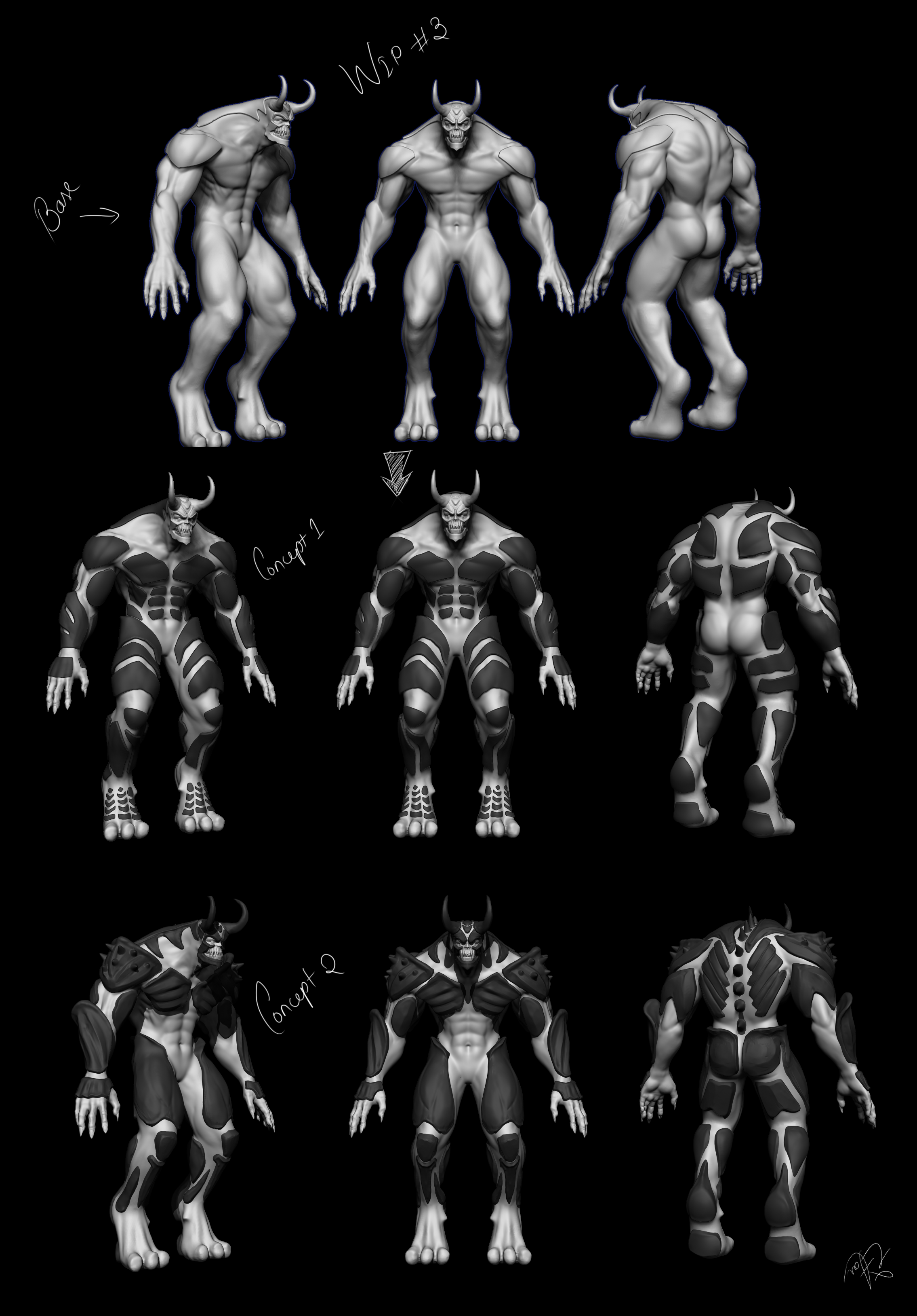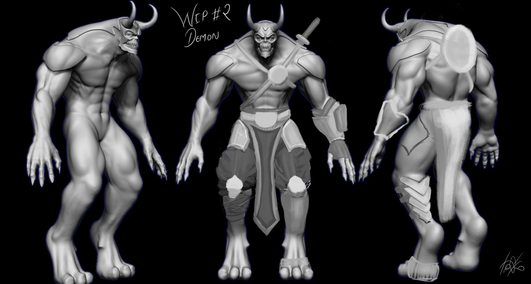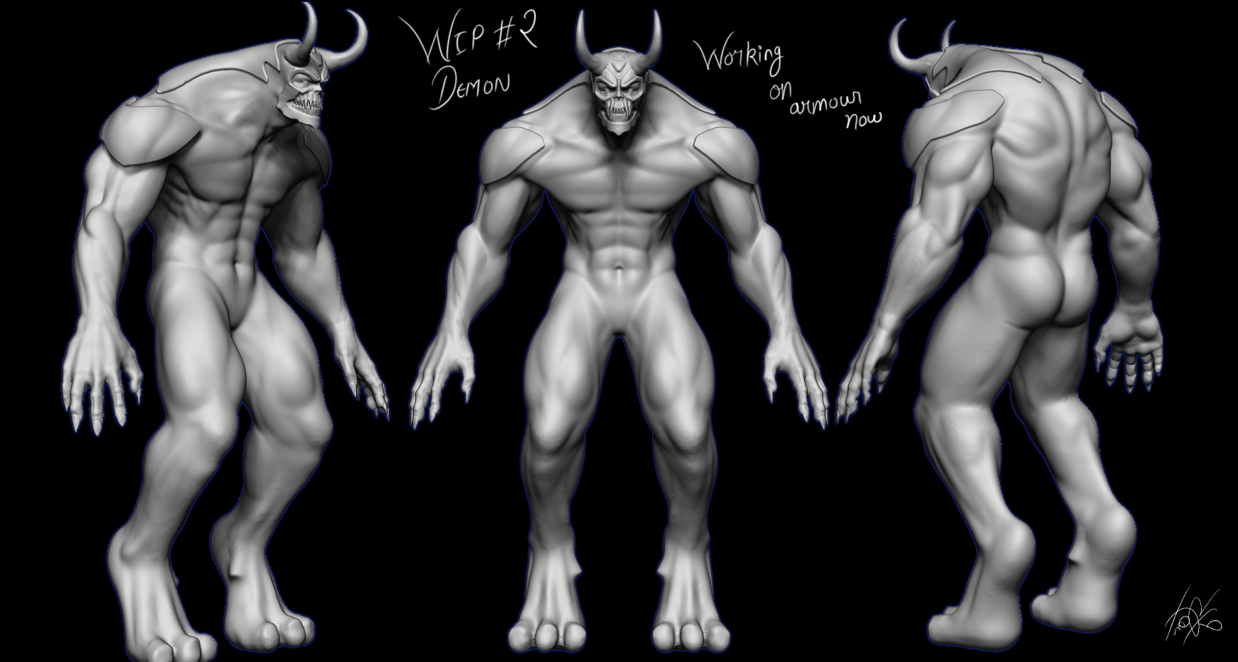 This is my first attempt at making a game res character. This started as a speed sculpt where I only sculpted till the torso and then afterwards I took it further 2 month later(mid-October) and decided to create a game res model. Inspired from demons search on google and doom(ofcourse).