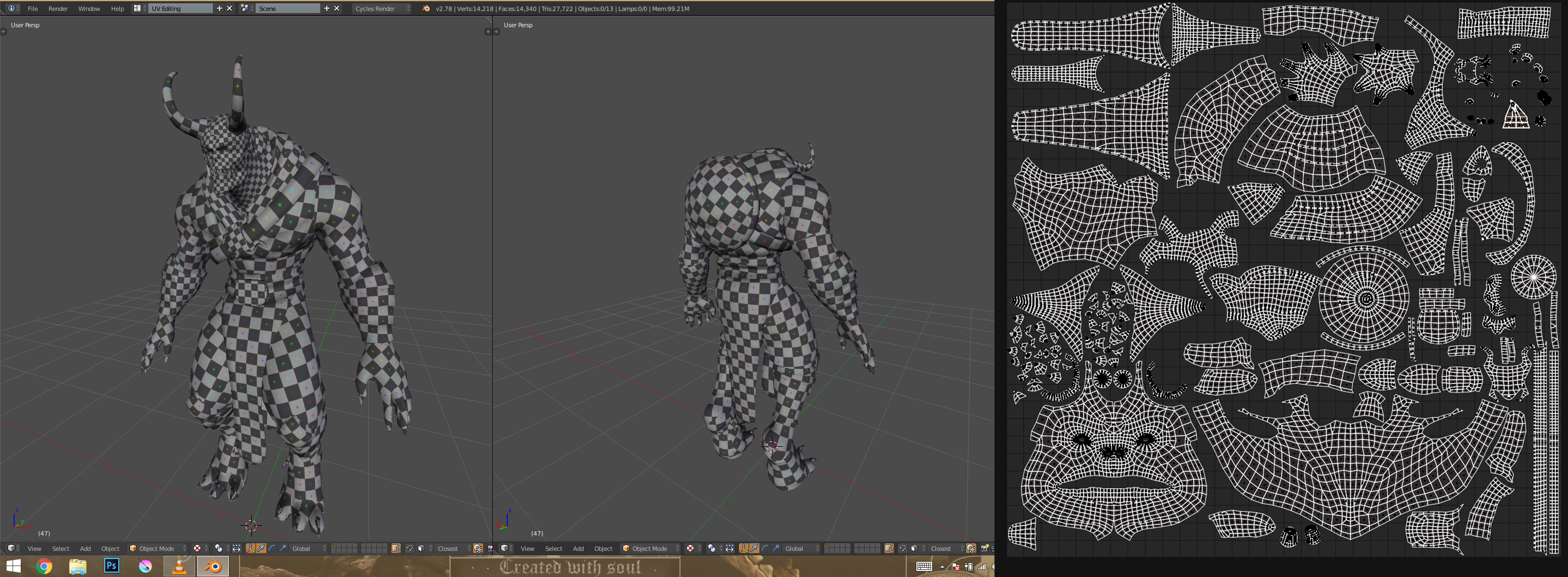 After building a ryzen rig, I started working on this guy again. Retopo and UVs done. It took me around 4 days total. Next texturing. :)