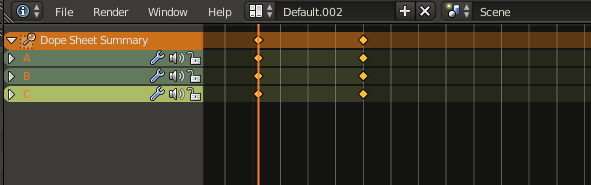 Now keyframe the bones on frame 0 , animate them all the same how you want (in my case I went to frame 20 , dragged them along the Y axis in the 3D Viewport a bit and keyframed them again) You will see the keyframes in the dopesheet represented by white diamonds (or yellow when selected) :