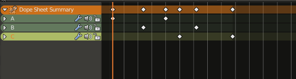 Now you can move the keyframes of each bone in the dopesheet by selecting them and hitting G , to offset the animation.(Remember to select the start and end keyframe when moving to keep each individual animation the same length)Â Here I moved bone B along and C a bit further :