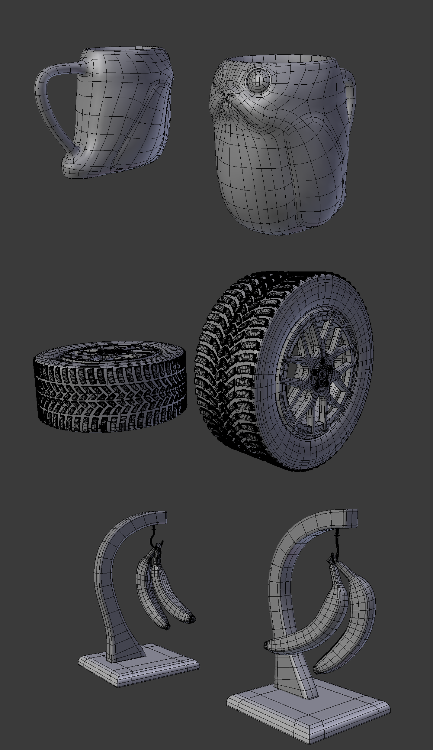 HOMEWORK: Model either 1, 2, or 3 unique objects using mesh-modeling techniques. They can be as simple or as complex as you like, but they can't be primitives. I want to see that you've used mesh tools to significantly customize your shapes. For example, you could model a hammer, a cell phone, a keyboard, a game controller, a picture frame, a coffee cup - choose something fun!