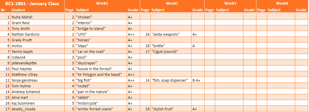 - 10 members posted already their homeworks to Week2, who already participated in Week1 (2 members to be added to the table yet)