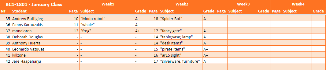 CLASS ANNOUNCEMENT #3 (Jan 15, 2018): Week 2 is done - We're halfway through the class! Today WEEK 3 begins where the focus is digital sculpting. This is a far more artistic method of shaping 3D models, so if you struggled in week 2, week 3 should be refreshing.