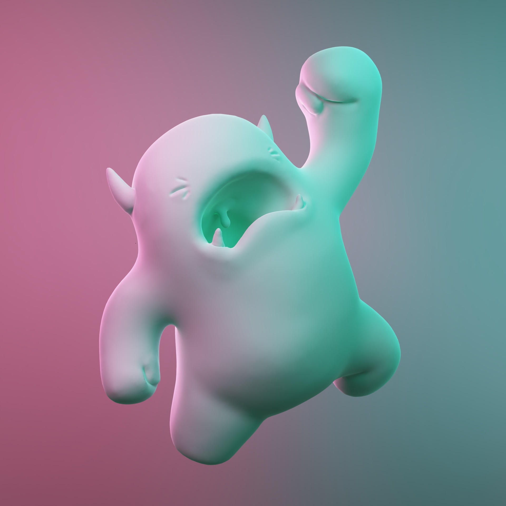 swikni! Sorry to hear you're not on your ideal computer, but you're clearly making it work. The front side of Melvin's left leg has an unnaturally sharp edge going down the length and the cube is less polished than the cone and sphere.