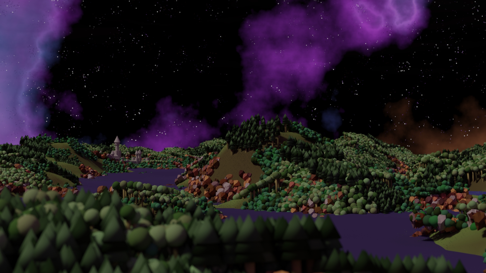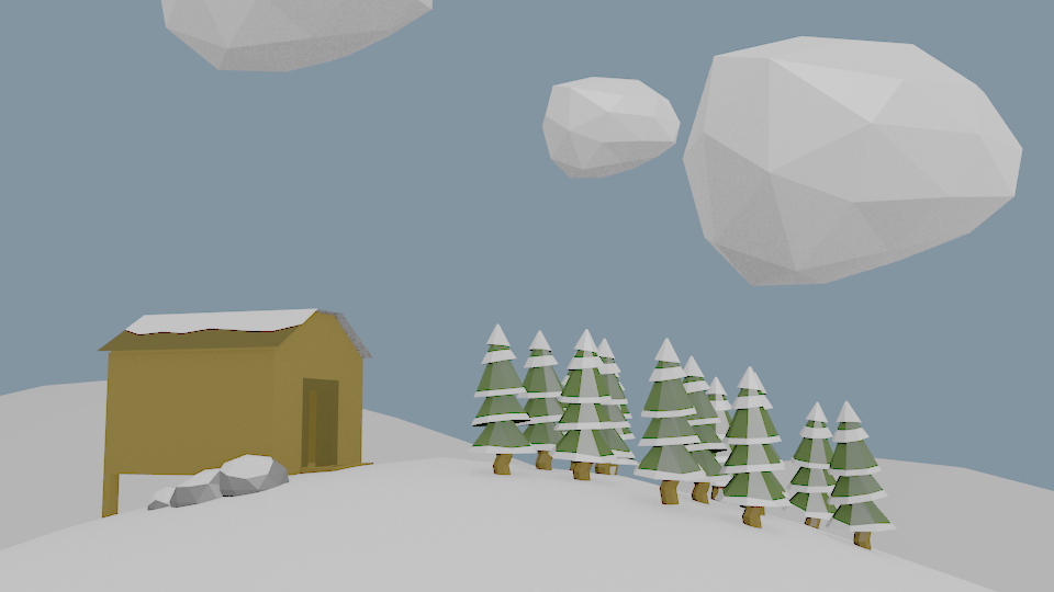 Clouds and rocks are ico-spheres pushed/pulled with proportional editing.